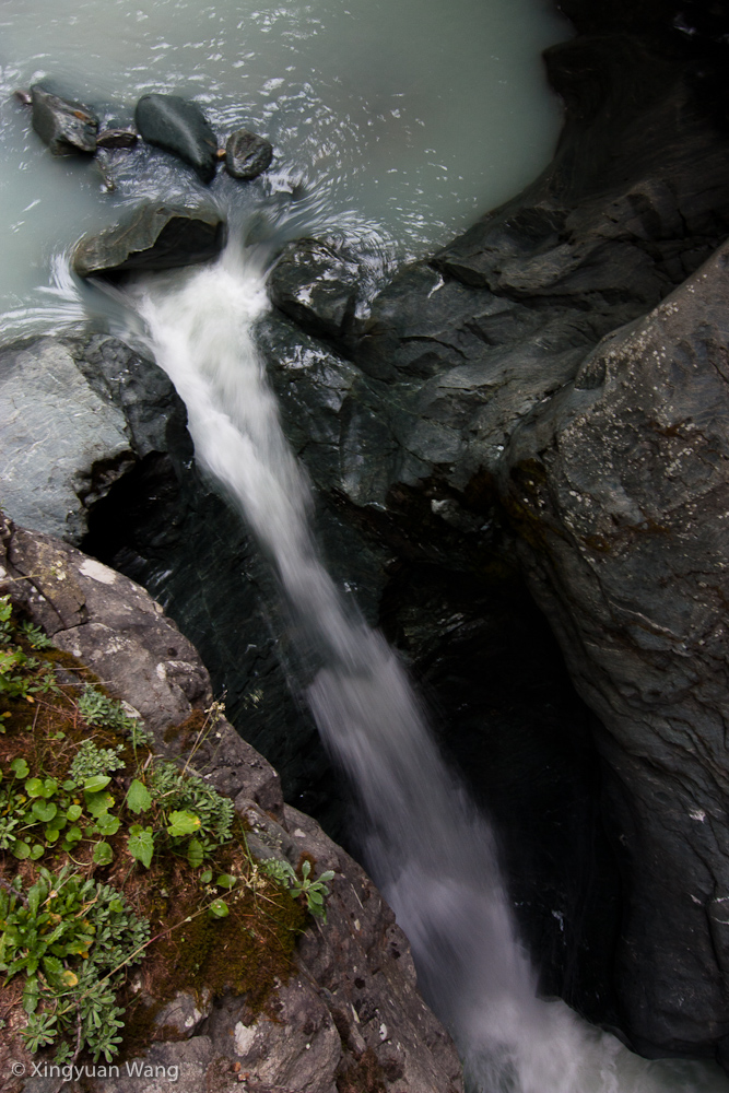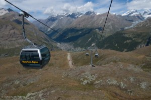 After my nap + breakfast ritual, I checked out of the hotel and went to the tourist office to see what else to do. I found out that Ricola has a garden about twenty minutes out of Zermatt; I stopped by quickly to see what it was all about (not much there, really) and then continued to try to find the Gorner Gorge, which was supposed to be on the way to the gardens and quite breaktaking. This wasn’t on my original plan and I had no idea where to go; I ended up hiking all the way up to the Furi cable car station, realizing my mistake, and then hiking back a third of the way to Zermatt. Turning down the fork I didn’t take, I saw why they say the gorge is breathtaking. The only problem is that you view it entirely from above, so while you get a sense of its depth seeing it in person, a camera sensor can’t really do the entire scene justice. Someone with more skill and a better eye than I will be able to pull off a more meaningful shot.