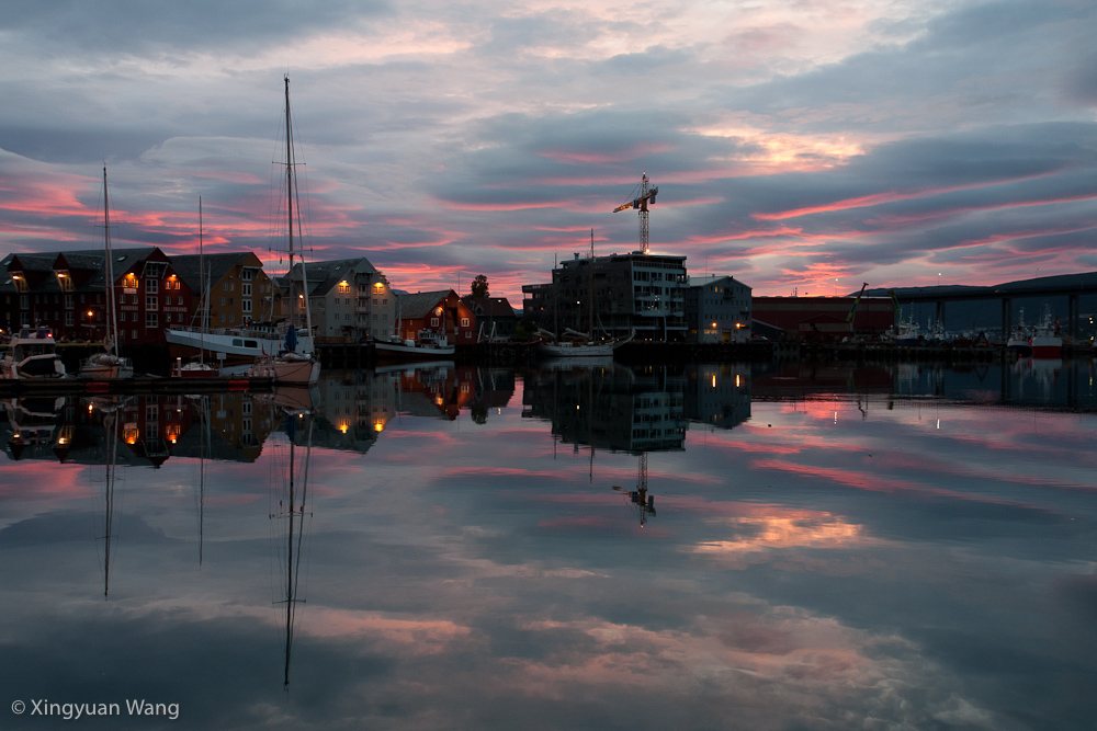 I landed in Tromsø, the Gateway to the Arctic, sometime after 9:30 PM on a cold, drizzly Friday night. I had been on three planes already, none of them Boeing, so I took a picture of a Boeing plane. Midnight sun had ended nearly a month ago, but even this late it was still quite light out.
