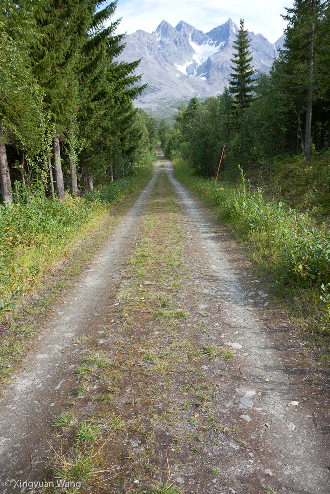 I was really successful at stone-hopping until my right foot slipped and I used my left foot to catch my fall — just as it slid into the cold water. That’s what I get for being uncareful after being very careful. The next day, shoes dried (lots of newspaper; thanks to my high school track coach — Hass — for letting me in on this useful tidbit), I went on another drive, this time to the Lyngen Alps. I was hoping for more snow, but instead I found a “hiking” trail into the mountains. I was running low on time and didn’t go all the way out, but it was a nice, quiet hike with the promise of something nice. I decided that was good enough.