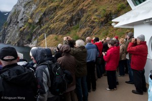 When we reached Trollfjord, however, the skies to the south had begun to clear and the rain had stopped. People gathered on the deck to take pictures of the scene. To be honest, I thought it was difficult to capture the steepness of the fjord and the narrowness of the inlet and backed away from my spot at the railing.