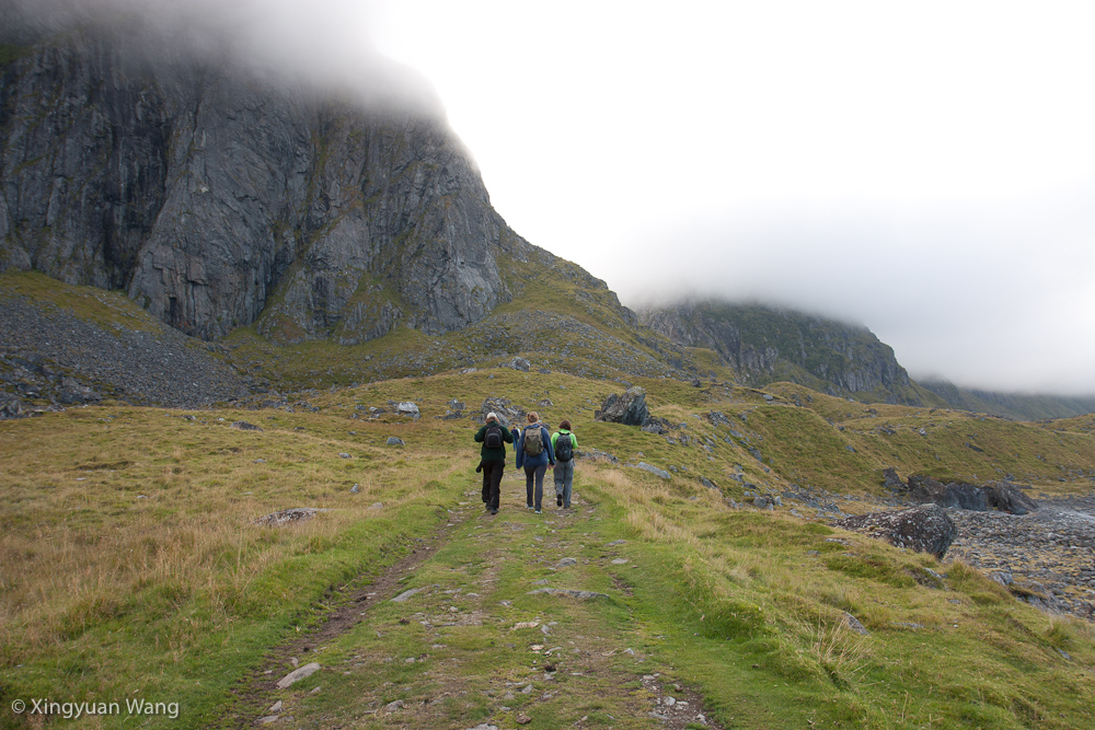 The next day, a group of four of us decided to go on a hike from Unstad to Eggum. We were two Germans, one Dutch, and myself. At first, it appeared to be an easy trail, with a wide path and only a gentle climb. The beginning (and end) are quite deceptive, however, as the trail quickly becomes narrow with steep dropoffs on either side. It wasn’t physically demanding but would be treacherously slippery when wet, no doubt due to the endless piles of droppings from cute, bleating friends. They and the partially digested remnants of their food were across the trail, on rocks, in the grass, and, well, unavoidable.