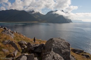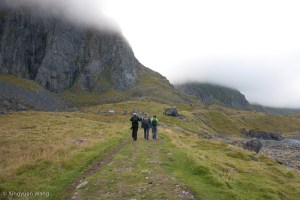 We reached Eggum about two and half hours later, ate a quick lunch, and headed back. At this point, clouds had begun to surround the mountains, bleeding off them to the north, and we headed back thinking that maybe our luck with the excellent weather (it had been an incredible summer — hardly any rain and very mild temperatures) had begun to wane.