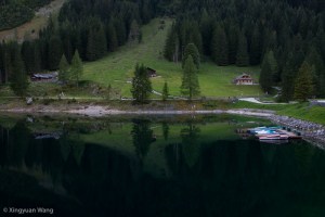 There wasn’t significant “evidence” of salt inside the mine — it’s not like there’s little containers of Morton Hallstatt Salt hanging from the ceilings — but I thought this was one of the best tours I’d ever been on. The tour guide did a great job explaining the history of the mine and the process for extracting salt, and we even got a little container of Hallstatt salt to take with us. All in all, a good day… walking around a lake, fresh fish, great tour, and great weather. We decided to drive through Gosau on the way back to Salzburg in order to see another lake. Even with clouds, this place was phenomenal at sunset. The water was dark when peering parallel to it but blue when looking into it and nearly perfectly reflected the mountain ridges above its banks;