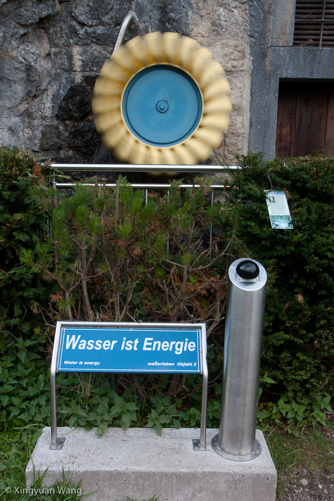 they even had a mini science exhibit along the side of the walking path! (That silver thing above the wheel pumped water into buckets mounted on the wheel, spinning the wheel. *together, now: oooh, ahhh.*)