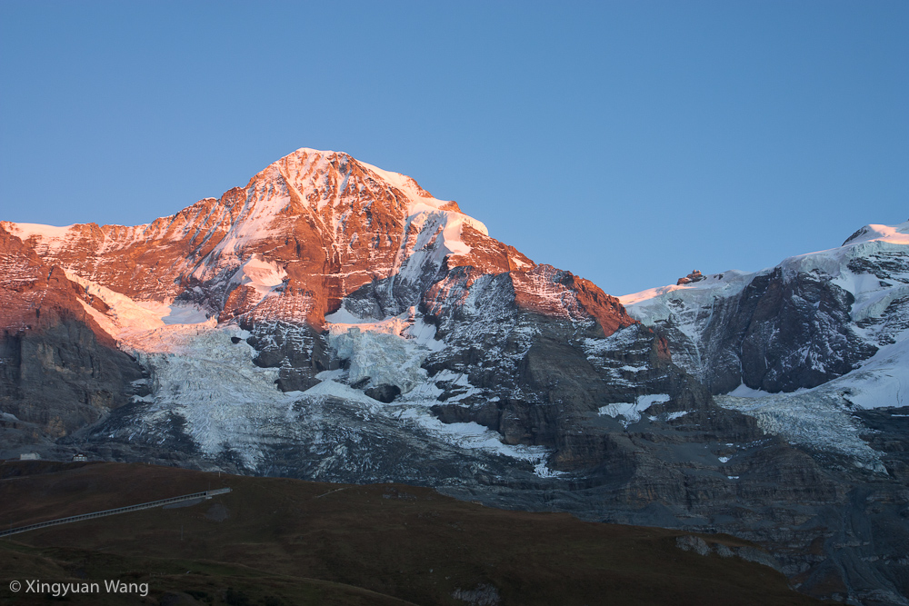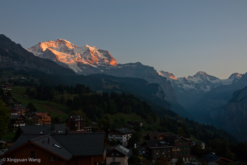 I had not intended to stop in Wengen on the way back, but as the train pulled in, the golden hour began to light up Jungfrau. Incredulous, I hopped off.