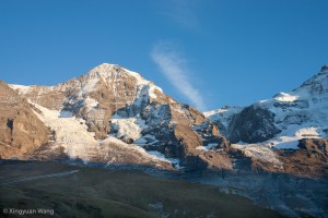 I ended the second day at Kleine Scheidegg to eat a quick dinner and to set up my tripod for sunset. I felt pretty alone as I watched the last train leave Kleine Scheidegg and the sun set on the mountains; though I wouldn’t be staying long (golden hour doesn’t last a full hour), I would have a decent hike down to Wengen in the dark by myself. Still, it was pretty invigorating to have literally no one between me and the mountains. ;-) Without clouds to catch color in the sky, the sunset wasn’t as colorful as it could have been, but I was hardly disappointed. This area is simply breathtaking.