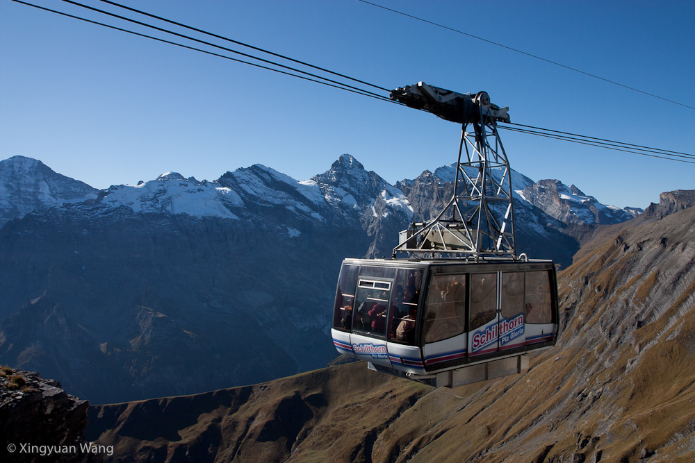 I decided to take the last day extremely easy: I intended to do no hiking at all. Fortunately, the Alps caters to that activity level, too. The Schilthorn visitor center is accessible by cable car and offers a great view of the Alps (here, too, as a chain and not just glimpses of individual peaks), though by now it had dawned on me that there is no bad place to view the Alps. Practically everywhere I turned was another jaw-dropper.