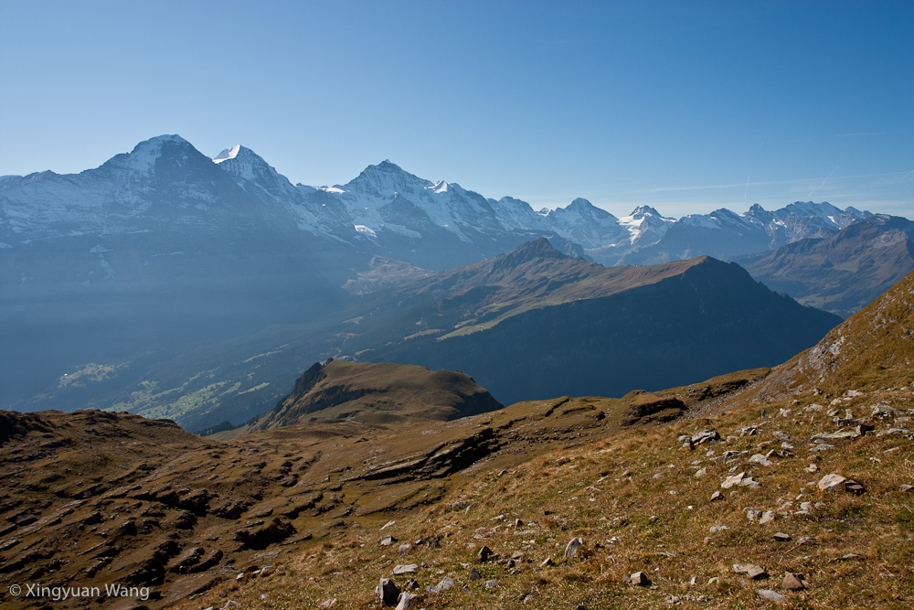 The first hike I did (Schynige Platte to First via Bachalpsee and Faulhorn) was one of the most memorable hikes I’ve done. There weren’t many people on the train from Lauterbrunnen to Wilderswil at 6:30 AM, but the cogwheel train from Wilderswil to Schynige Platte was packed — they had to get a second train to meet capacity. It was clear why so many people visited this area once I arrived at Schynige Platte: the views there are spectacular. Not to say that views from elsewhere aren’t impressive; the difference is that from most places, such as Kleine Scheidegg, it’s usually only possible to see Eiger, Mönch, or Jungfrau: