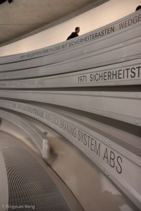 In between each floor (which serve as halls for a given time period) of the Museum, there were photographs and descriptions about world events in that time period. One floor showcased Mercedes’ contributions to safety. I thought it was neat that they listed the safety innovations of their cars on guardrails. How clever! Naturally, I took a picture that included ABS, but truth be told, Bosch was not the inventor of ABS: we were the ones to commercialize it.