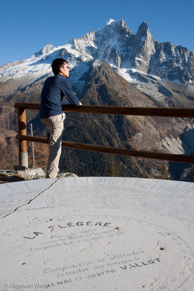 I actually didn’t take a picture of the Mont Blanc massif until I started the descent back toward Chamonix (the first picture in this post, but note that the summit of Mont Blanc isn’t always visible: from the Chamonix valley, it’s hidden behind what is actually Le Dôme de Goûter), but at La Flégère I took some pictures of myself using a rock, instead of the three-legged variety that I intentionally left at the hotel, as a tripod and of what is now a severely retreated Mer de Glace and the valley it has carved. I also took a picture of the ski lifts map — all were marked by red LEDs signifying their being shut down — for my own laughs later on. ;-)