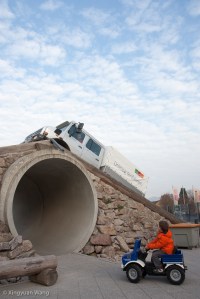 The area right outside the museum is a “test” lot where you can go ride in a Unimog. For 6,50 €, you can sit alongside a volunteer driver — there are over 60 of them — as he or she takes you around the loop. Though none of these obstacles are particularly demanding for the Unimog, I haven’t had a smile that big on my face in a long time, perhaps since the Nürburgring. This is, however, a bit safer and cheaper. And for off-road geeks like myself, much more giddy-inducing. [N.B.: it’s difficult to stress the steepness of these angles. In the photo on the right, the descent grade is only 70% — less than 45° — but when you’re at the bottom, you feel like you are looking straight down at the ground. So many roads and hikes are of such shallow angle that it’s difficult to fathom from a picture just how steep some of these grades are, until you feel like you’re about to fall into the windshield or out of the door.]