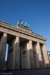 A friend and I thought to make this weekend a bit of a look at history rather than take in the pulse of the city. We started off by doing part of the walking tour that Lonely Planet had suggested; this took us first past the Reichstag and toward the Brandenberg Gate. Just over twenty years ago, it would have been inherently impossible to walk through this gate alive — and now, every one of its five openings permits a free flow of foot traffic. Note to self: change is good.