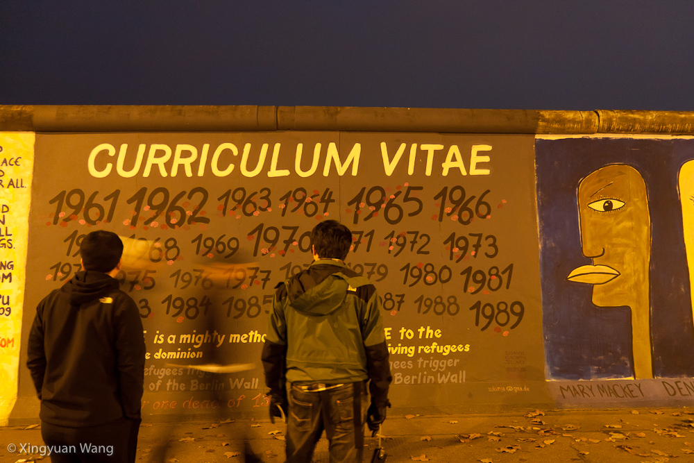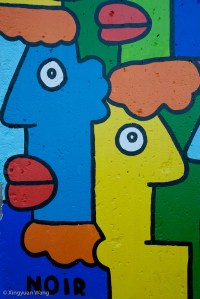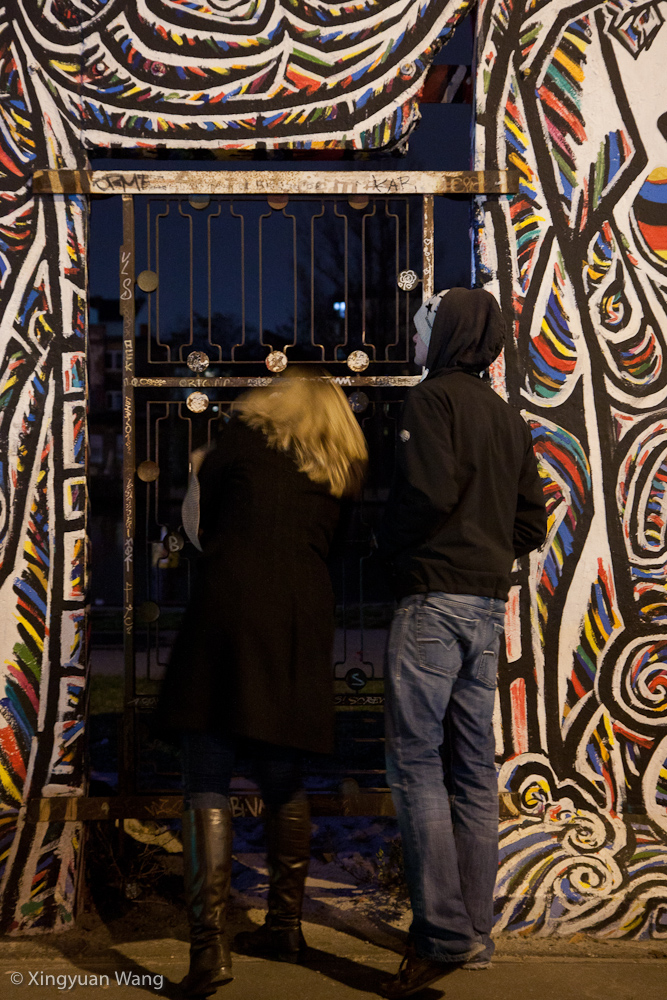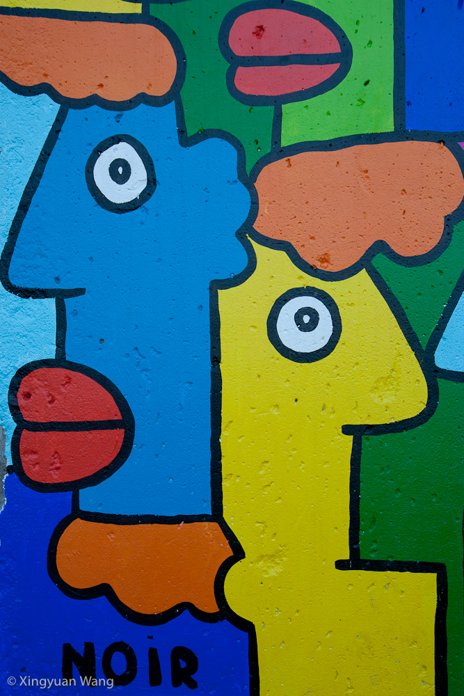 After a late lunch, we ended up at the Wall, preserved here by the East Side Gallery. It stretches for something over a kilometer and features a pretty wide gamut of emotions and art. (Forgive the white balance on the picture on the right; I didn’t adjust it prior to uploading.)