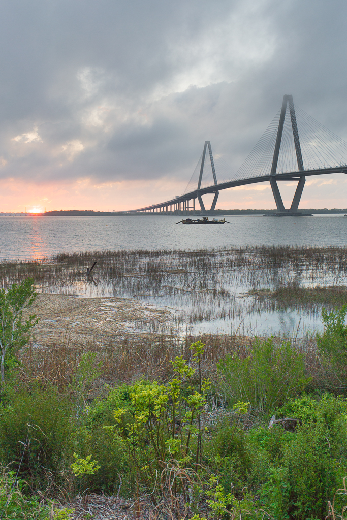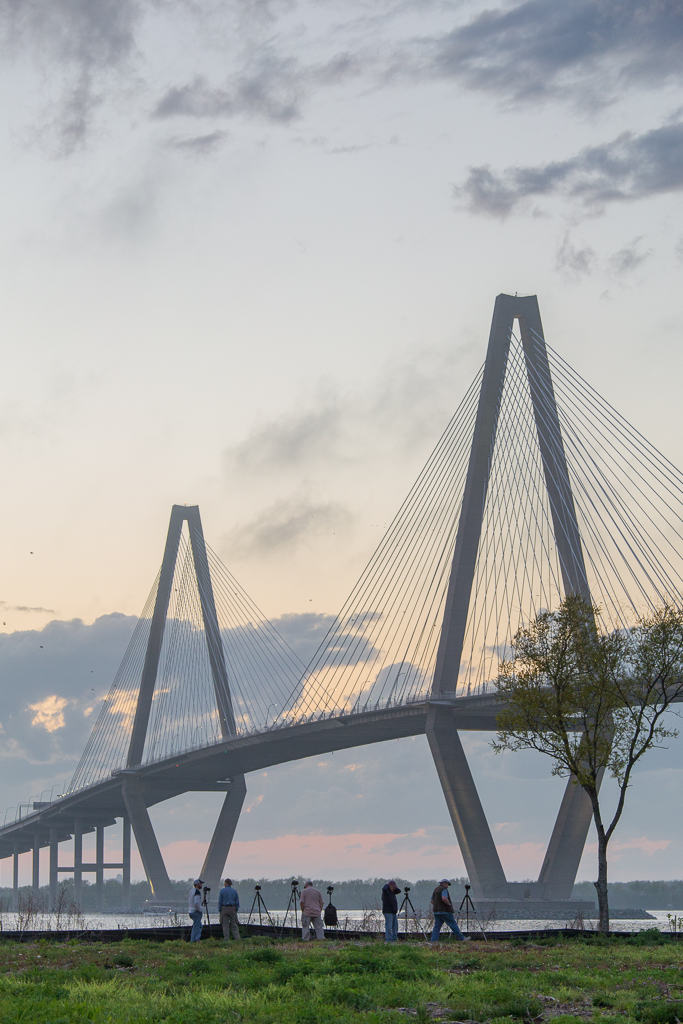 With a lack of mountains, construction equipment, and planes in my daily life, I’ve begun to rely more on photography to take my mind off work and the grind. I’m no good at portraits (and rarely get to shoot mountainous landscapes out here), but the “click” of a shutter is to me a soothing sound regardless of subject. On my way to meet friends one evening, I noticed the clouds shaping up for what seemed like it could be a decent sunset. I told my friends I’d be late and headed to the Ravenel Bridge — and joined several other photographers who seemed to have the same inclination.