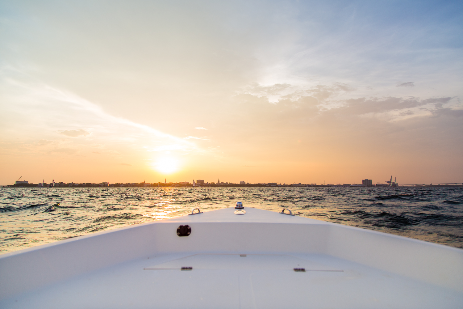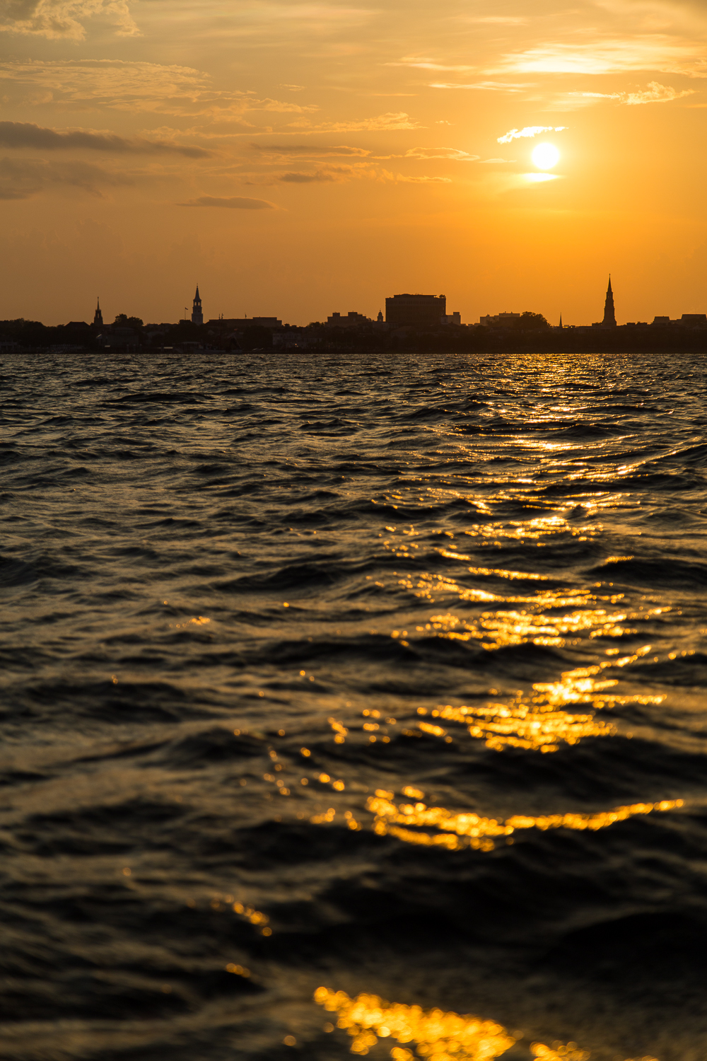 I was actually on a pontoon boat earlier that day, but heavy wind and rain chased us off the water (and ripped apart the canvas canopy of the boat). The storm had mostly passed through Charleston in the hours afterwards, so hoping the sunset could be a dry and good one, I took a boated friend’s (N.B.: if it sounds familiar, it should: I’m borrowing this sort of description from the more familiar “landed elite”) offer to head to the harbor for an evening on the water.