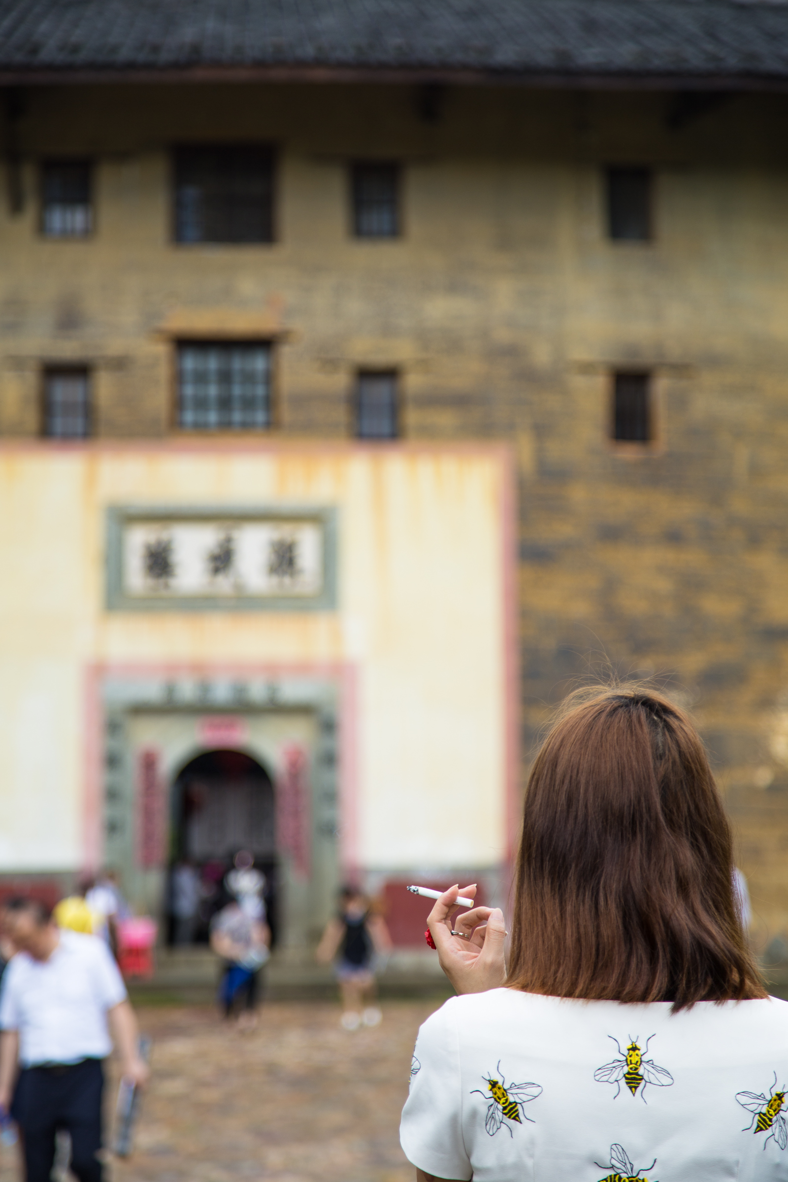 Perceived needs create jobs and build economies, though the dependence on tourism, my obsession with aviation, and the ongoing electronic enslavement pales in comparison to what is arguably the biggest addiction in China: cigarette smoking. Estimates peg the number of Chinese smokers to be around 350 million, larger than the entire US population. Few pay attention to the rules (or few are aware there are rules), so smoking areas with signs saying, “Please close door!” have doors wide open. Passengers and drivers alike smoke in cars, and restrooms often smell of smoldering cigarette butts. At the 福建土楼, or Fujian Tulou (Fujian Earthen Buildings), I tried to get a picture of a faceless, nameless visitor puffing a cloud of smoke, cigarette in hand and pondering the ancient building in front of her. It took me three shots to get my composition where I wanted it, and in that time, her exhaled smoke had dissipated even though the smell lingered.