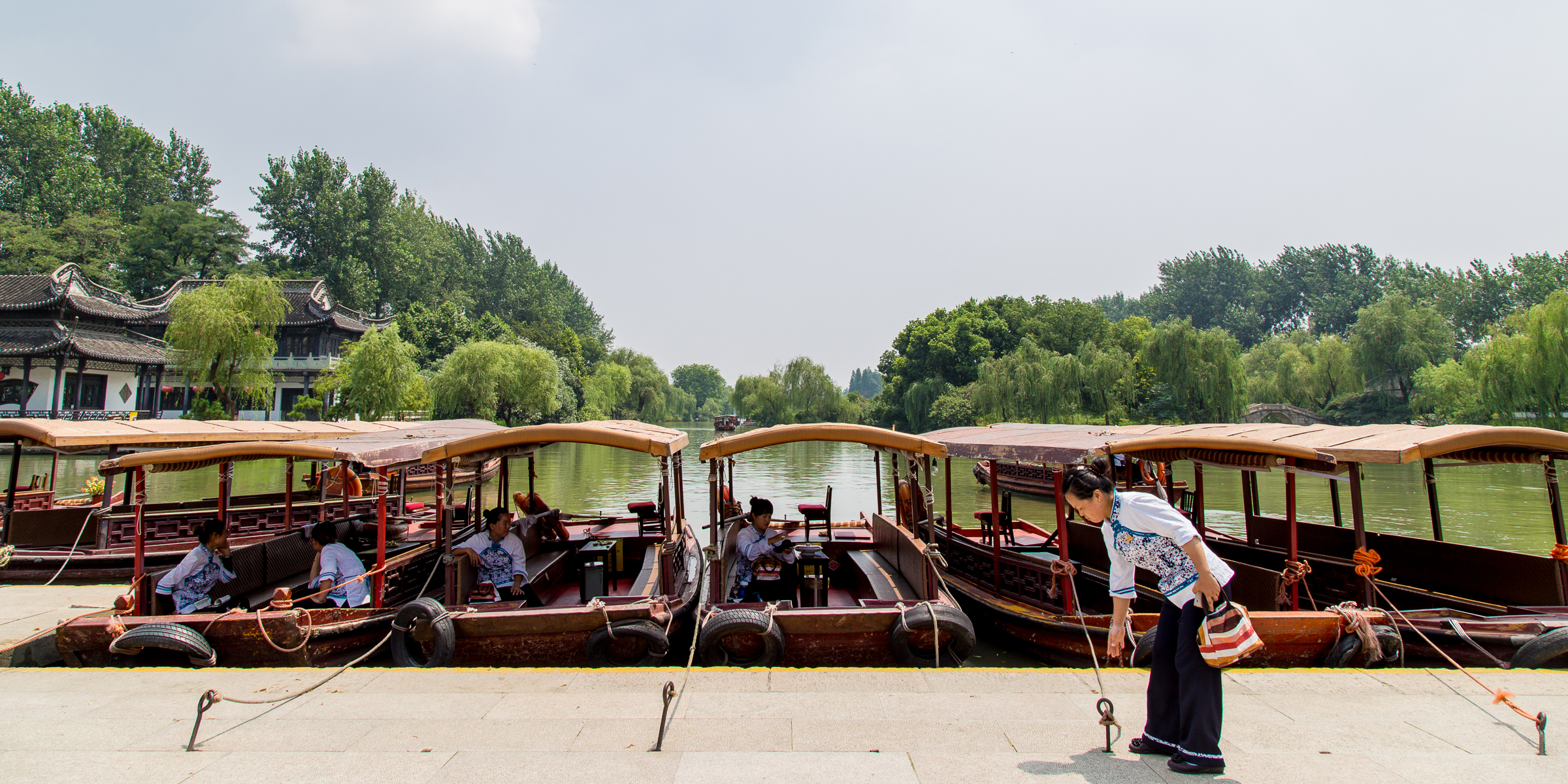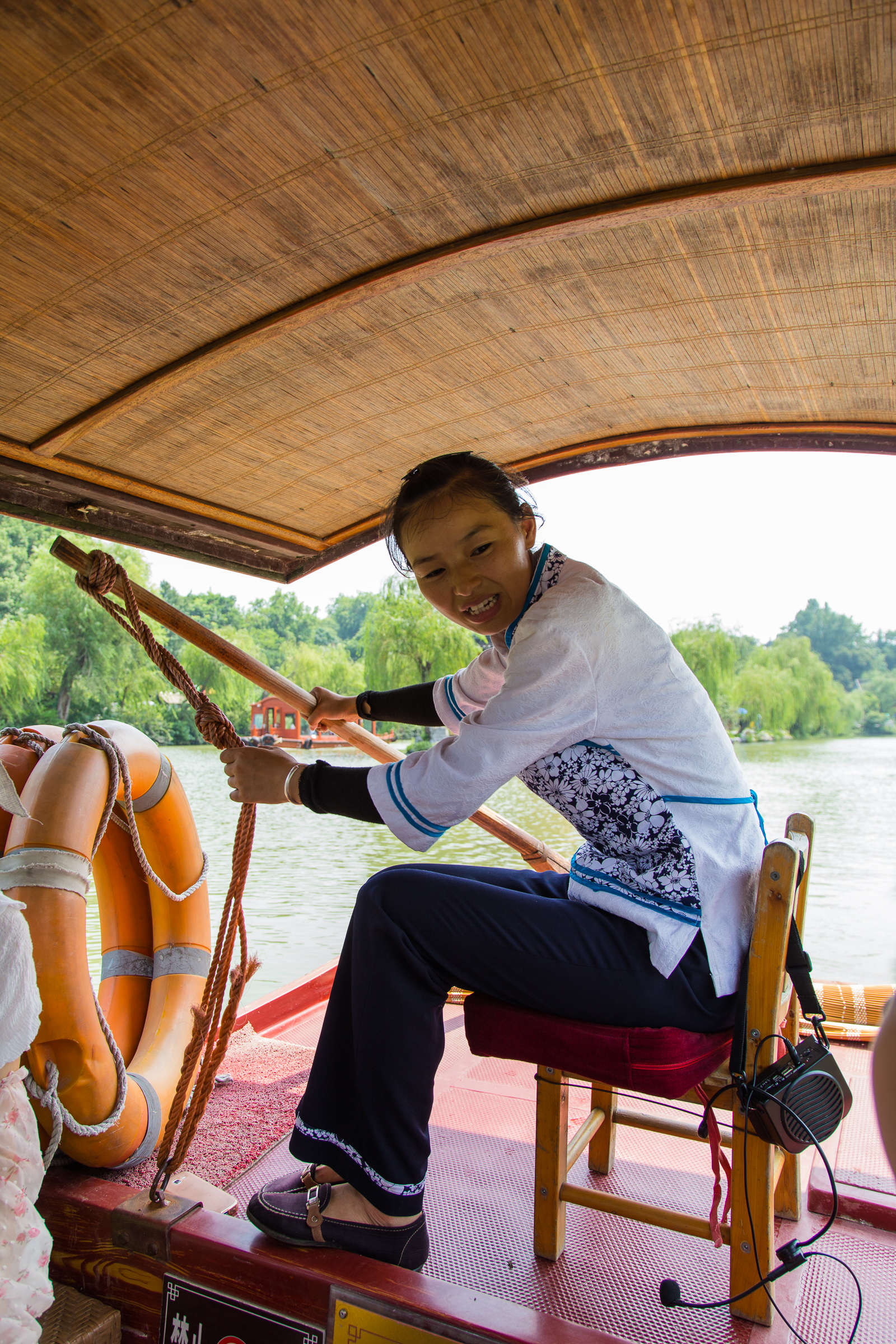 When I visited Yangzou, the tour of the Shou Xi Hu comprised a walk out along the lake and a boat ride back. There weren’t a lot of tourists the day we were there, so several boats were moored along the dock as the day began. The size of the fleet (docked here and on the lake) gave indication to just how much the tourist industry has grown: a case in upward mobility for those who had the means to get a job.