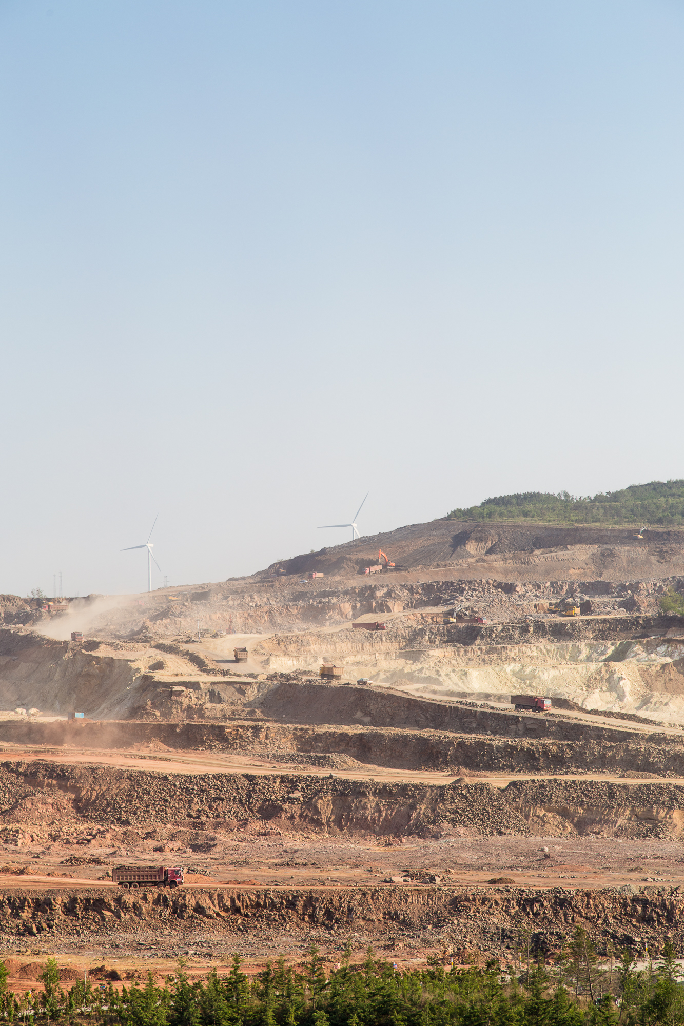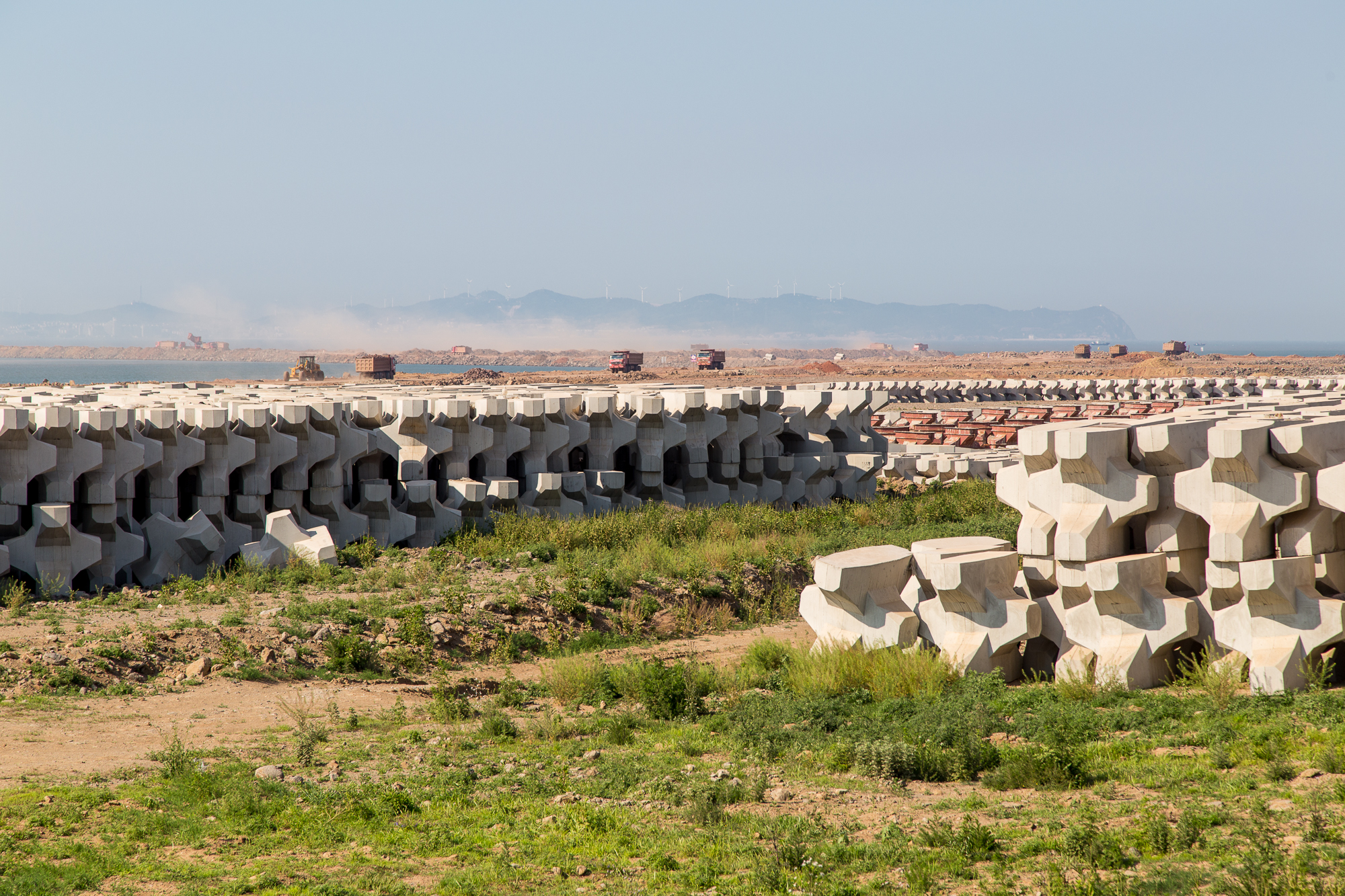 Of most interest to me during the visit was the development of Peng Lai. It’s no secret that China is expanding in several directions, but this was the first time I had seen firsthand an entire mountain being excavated in order to build out the coastline. [Predominately] Volvo excavators loaded 40-ton trucks one bucket at a time, and the trucks then drove down the mountain and out to sea to dump their loads.