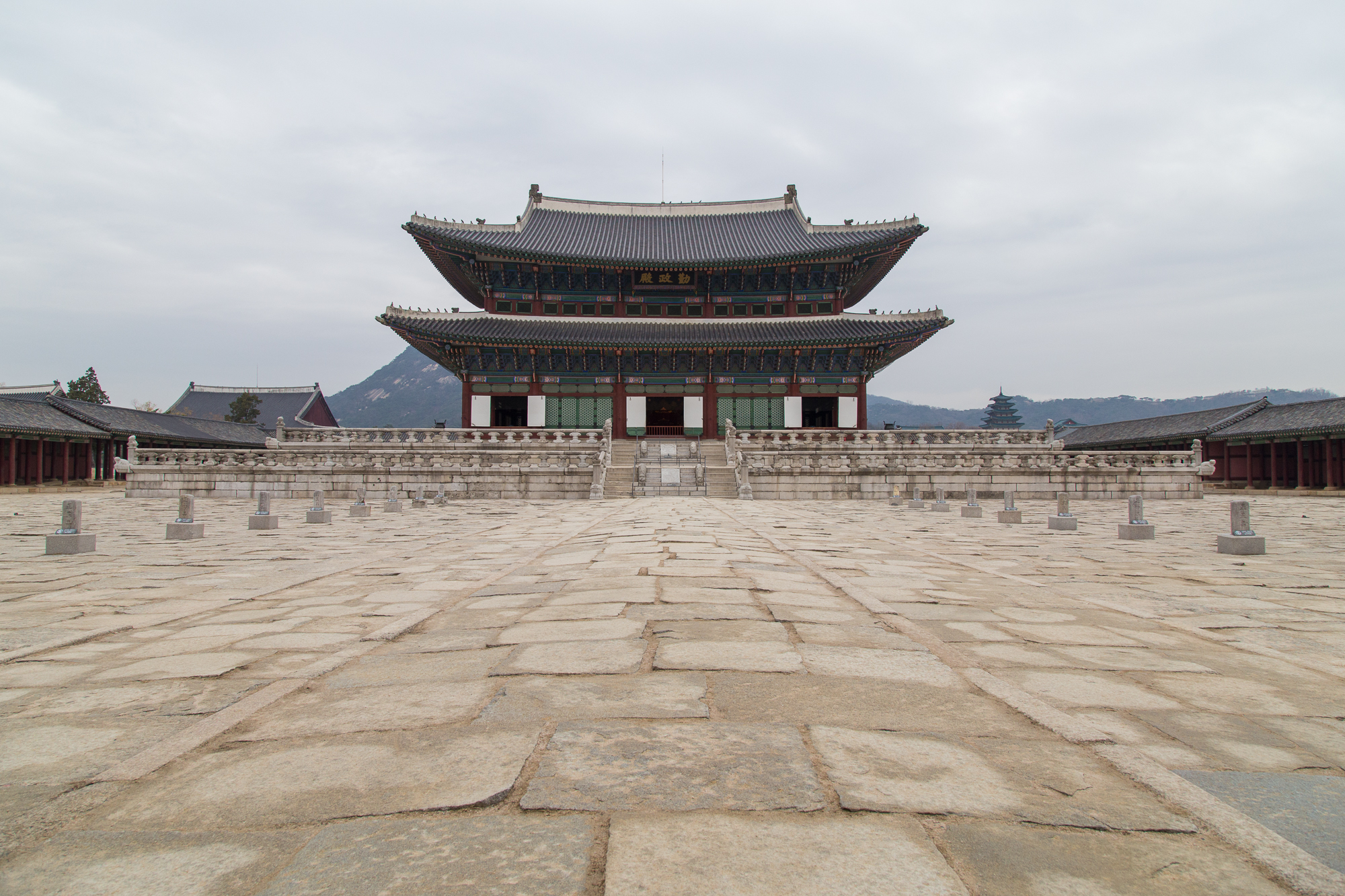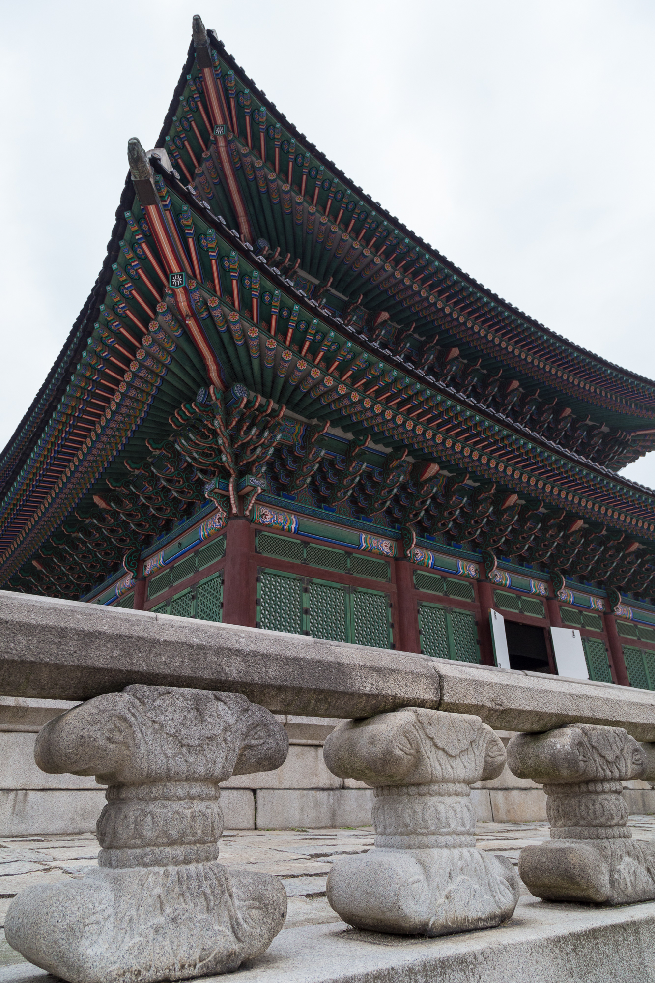 The next day was my last day in Seoul and also the first day with rain in the forecast. I took the opportunity to get out to Gyeongbukgong Palace before the raindrops fell and before the crowds awoke; as such, the grounds were practically empty when I arrived. The path leading to Geunjeongjeon, the main throne hall of the compound, is divided into thirds: one for military, one for civilians, and one for the king himself. Without visitors standing along the path, it’s not hard to visualize its use hundreds of years ago.