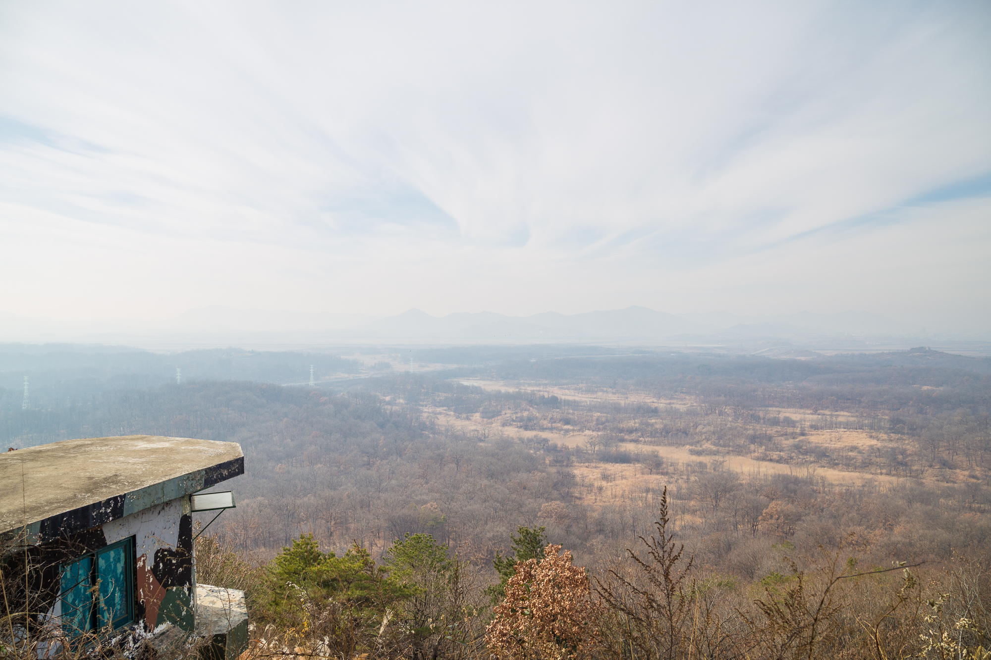 Later in the tour, we stopped at the Dora Observatory. There are military watchtowers here, but on clear days the row of binoculars allows for decent views into North Korea. Ours was unfortunately not a clear day, but the apparent dearth of anything living in the 2 km-wide demilitarized zone (DMZ) hinted at the tenseness of the silence.