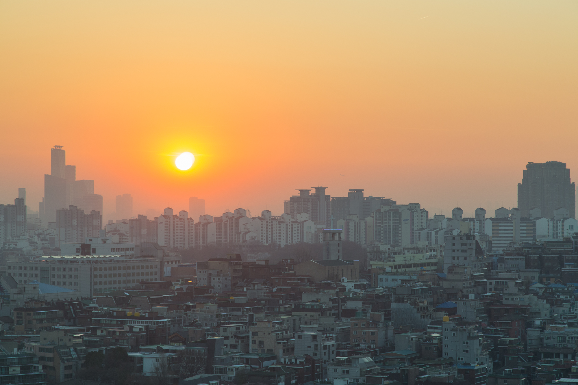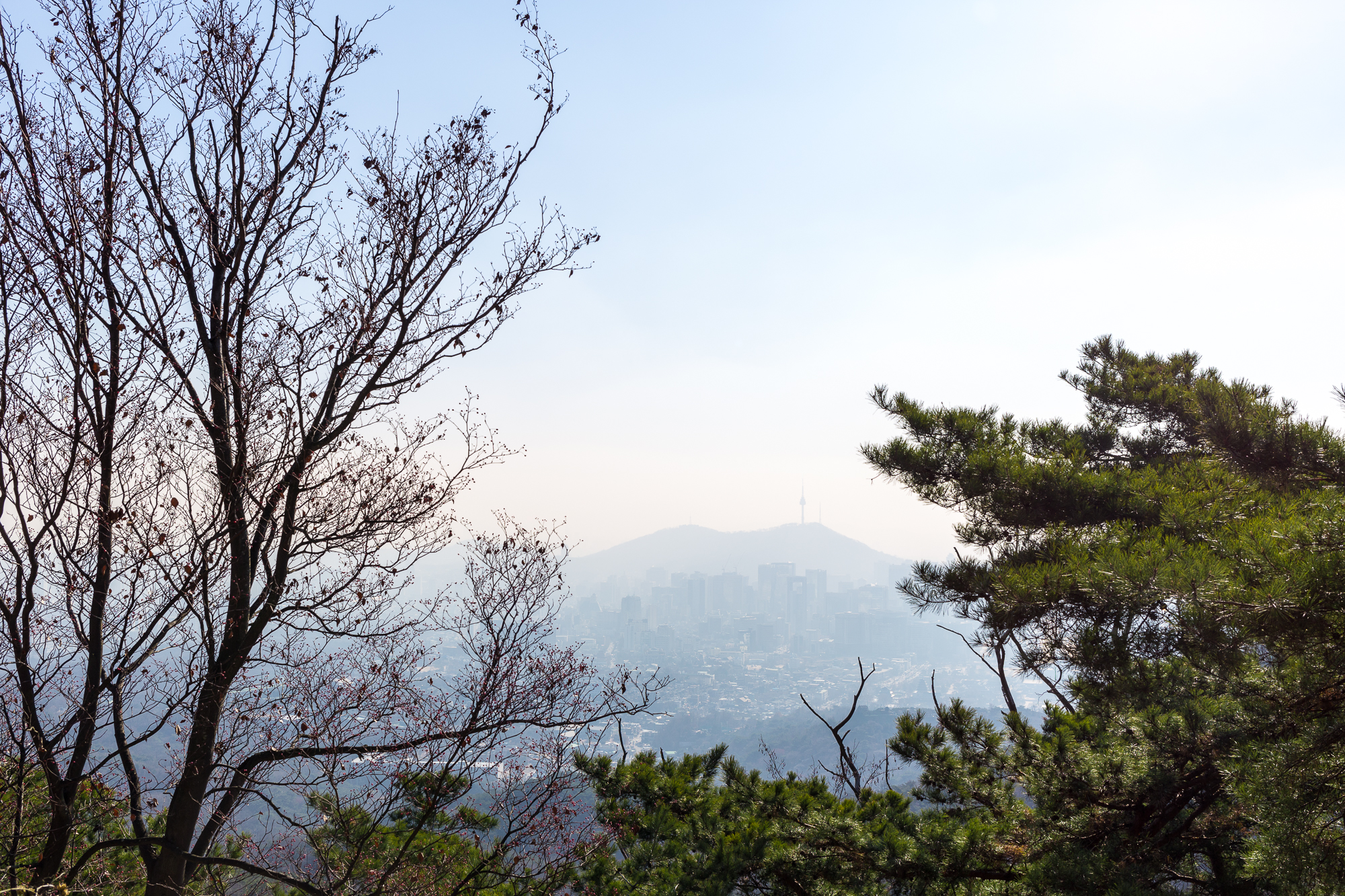 Apart from being near that delicious market (Thursday’s breakfast, also a menu-pointer, was also great), the apartment was on the 20th floor (19th for Europeans) and had a great view over Seoul. The only day I got to see a sunset was hazy but colorful.