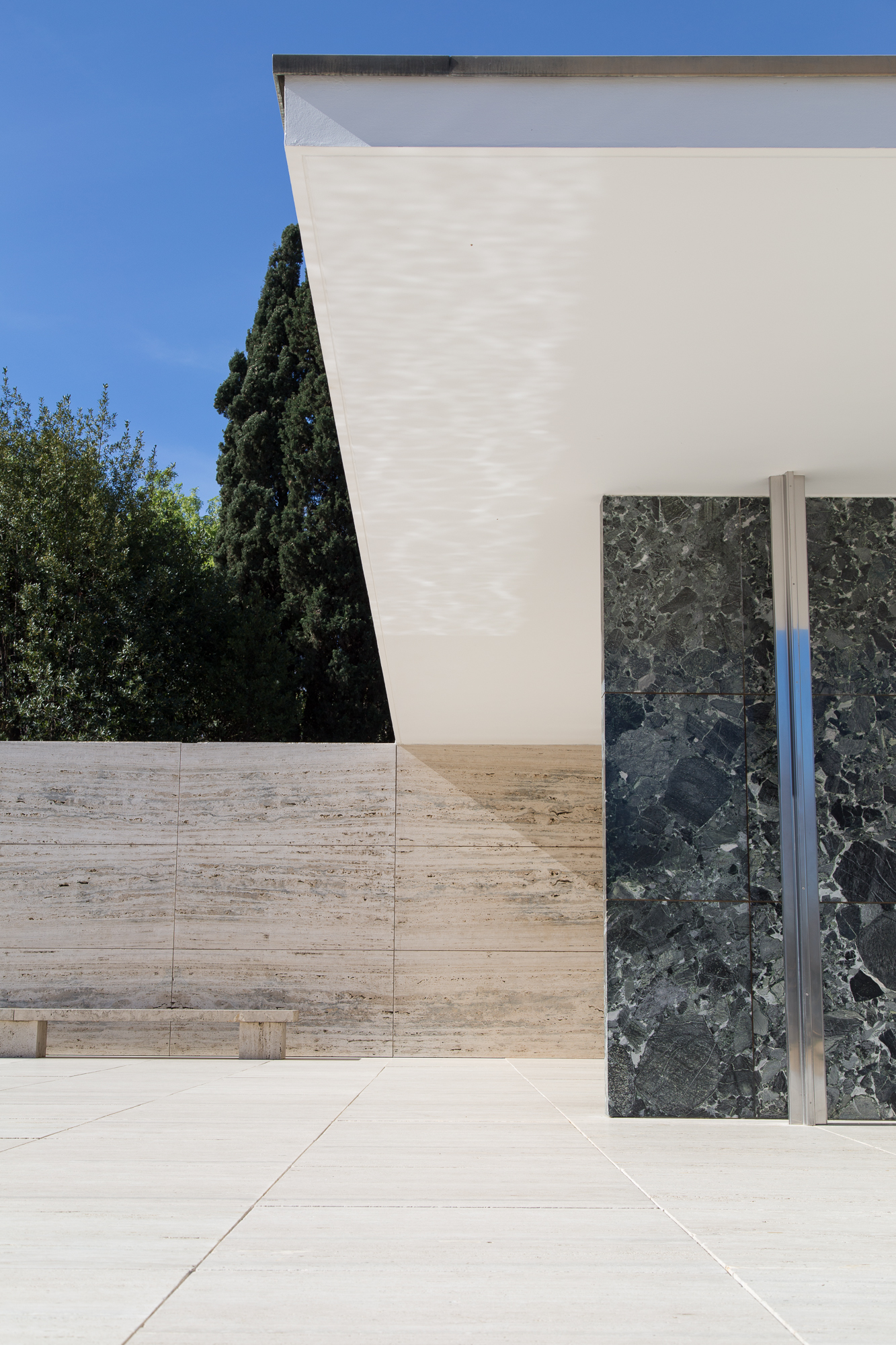 The final morning of my stay in Barcelona, I headed to the van der Rohe Pavilion, a building designed by Mies van der Rohe for the German National Pavilion for the Barcelona International Exhibition in 1929. van der Rohe actually ran the Bauhaus art house in Berlin for some years, but as I’m unfamiliar with the specifics of the movement (even after visiting its museum!) I wasn’t familiar with his name. The Pavilion was smartly designed and actually quite refreshing; unlike the hustle of Barcelona and the neighboring Plaça d’Espanya, the Pavilion was tranquil and rather soothing.
