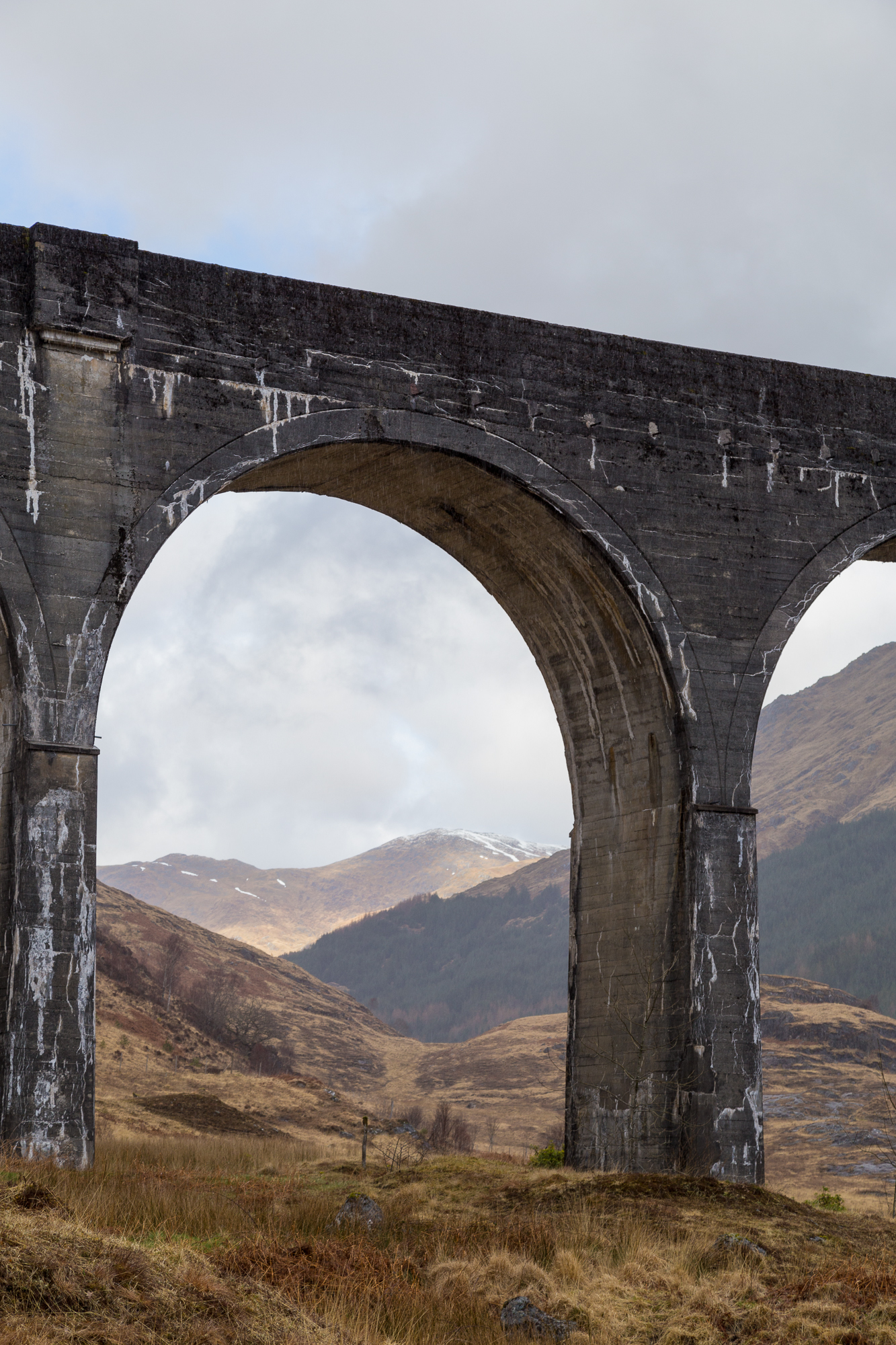 Not far away from Fort William is a road that leads to Glenfinnan, home of the Harry Potter Bridge, which I’m sure has a proper name in the books. In real life it’s known simply as the Glenfinnan Viaduct. The steam train wasn’t running when we went, but even without its locomotive the viaduct was surprisingly photogenic. The hills at its two ends would have given endless more photo opportunities if time had allowed.