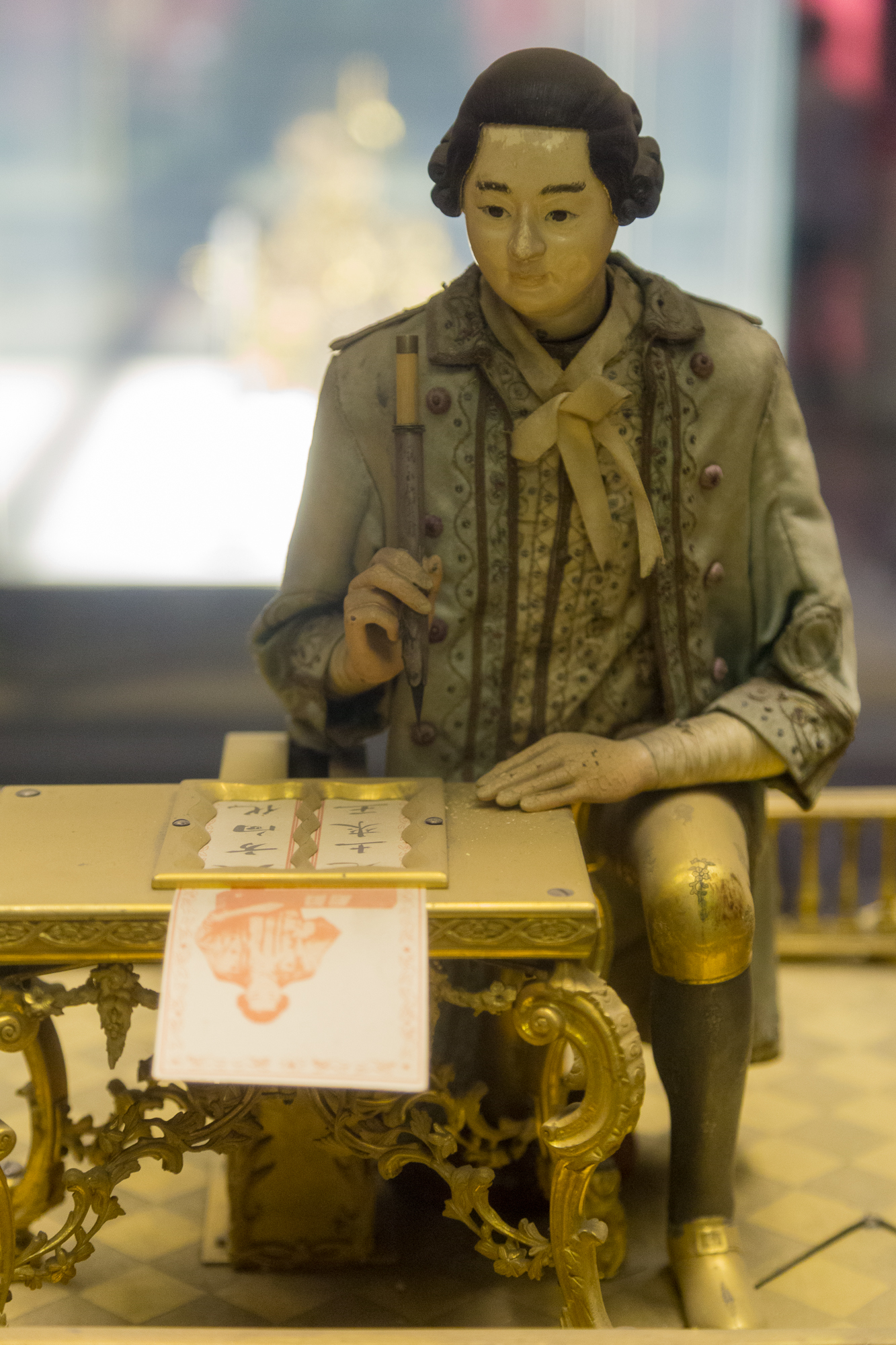One of the most [technically] impressive displays in the Palace is the Hall of Clocks and Watches. It’s an indoor showroom suited mostly for those interested in design or function of ancient timepieces ; its niche today in the face of digitalization probably borders on insignificant. One clock in particular stood out to me. Made in London in 1790, on the hour the man inside the clock practices calligraphy, the eight characters taking a minute or two to complete but with painstaking precision.