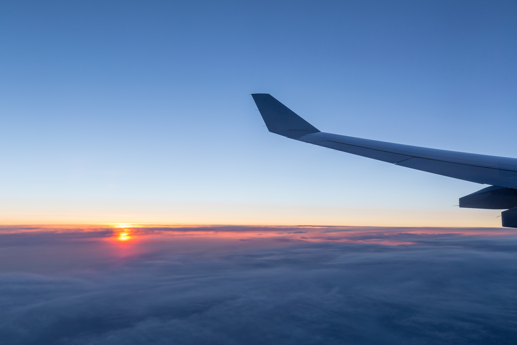 Flying northeast with an afternoon departure meant seeing a sunset and a sunrise; I chose a window seat even with just under nine hours airborne, hoping to see at least one of the two. What was more fascinating than the colors of sunset were either the high clouds beneath us or the bypass from the turbofans condensing immediately — normally where it’s difficult to discern airplane movement in flight this time I could see the white trails streaking steadily by. It’s the first time outside of turbulence I’ve had a sense of just how fast planes move, miles above all other forms of traffic. I slept through sunrise.