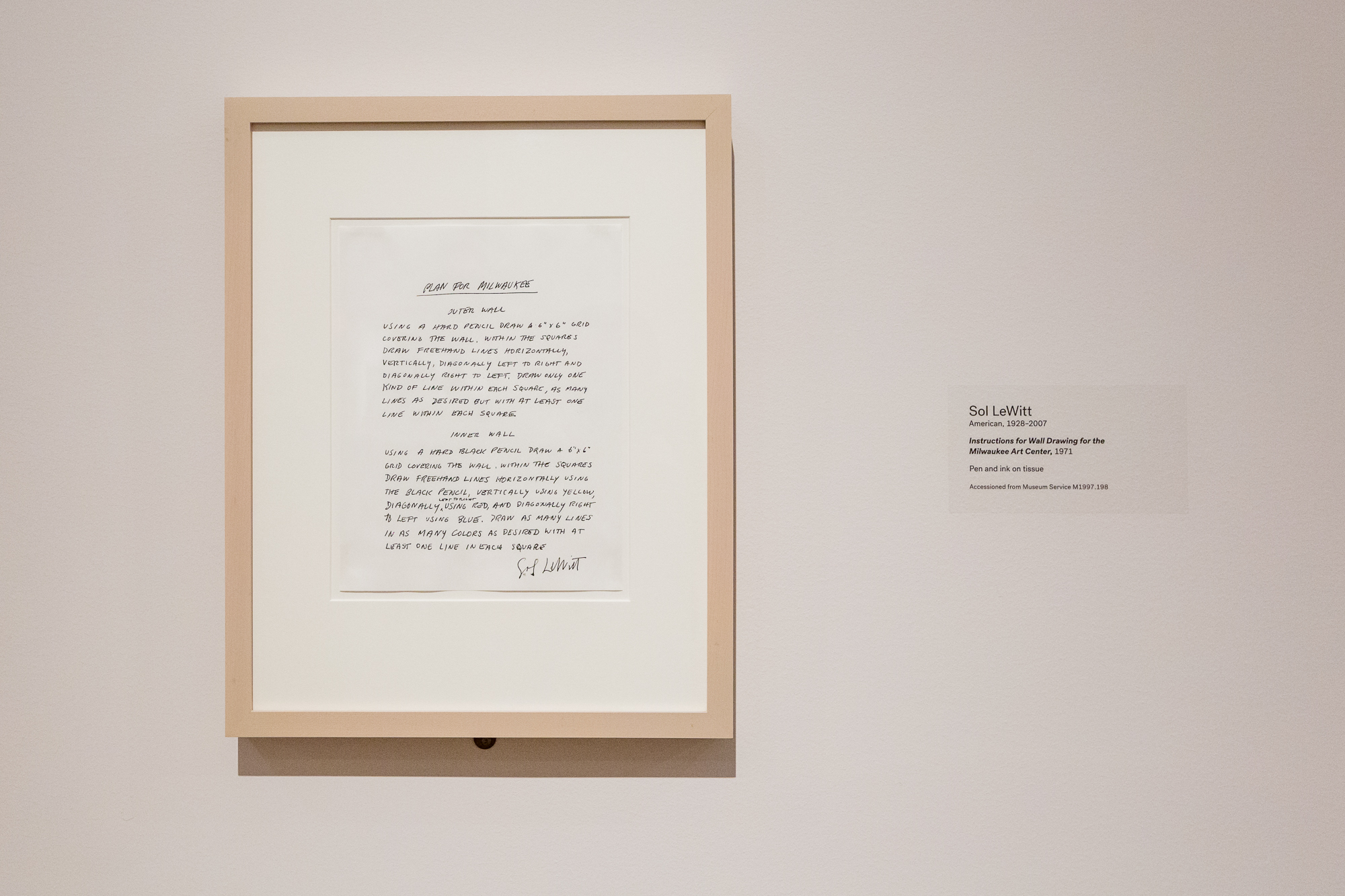 Another was a set of instructions by a professor of art; the execution of the instruction, a massive work covering an entire wall, was completed by his students. Brilliant!