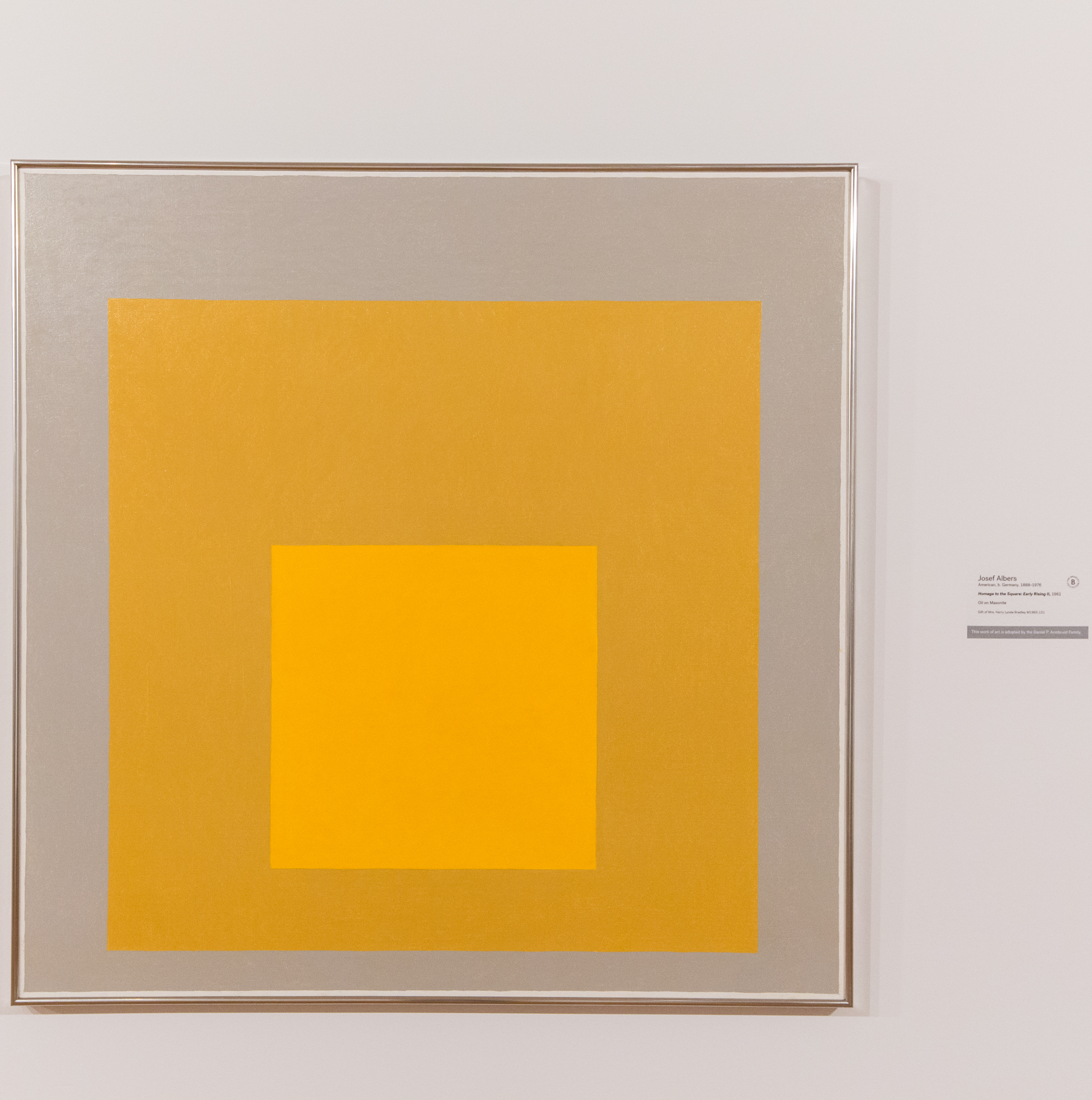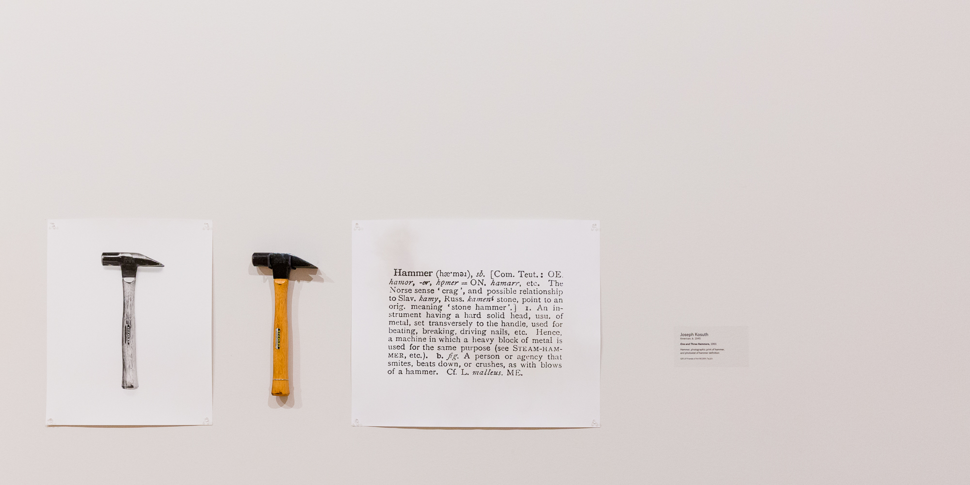 Near Parker’s sculpture were two exceedingly simple (and therefore elegant) works. I do remember the tour guide commenting at this point that he could have made it big, too, if he only thought to hang a picture of a hammer and the hammer next to each other.