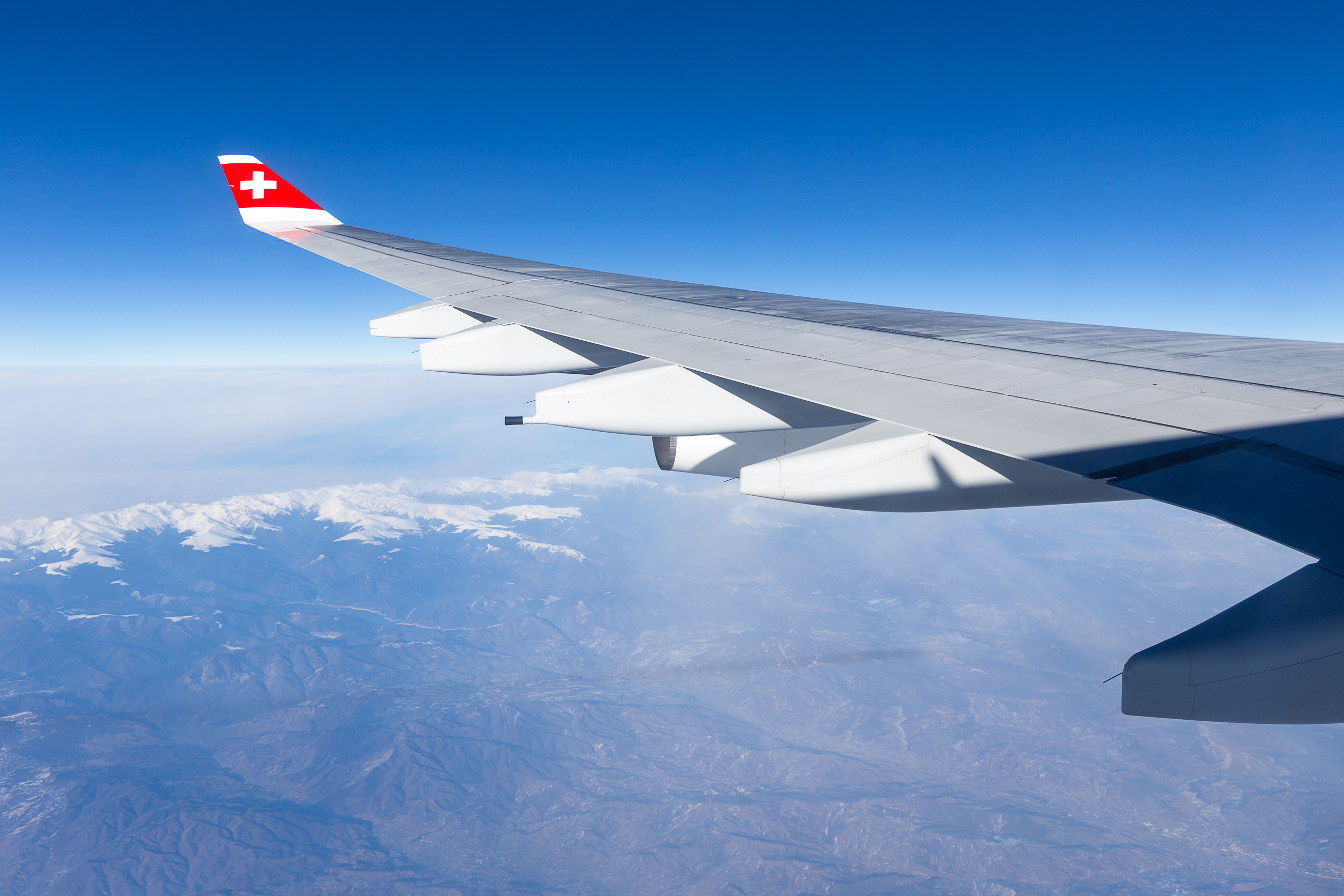 The Alps were hidden on the group, but once in the air it didn’t take long to penetrate the cloud layer. We climbed out of the clouds too late to see the Swiss Alps, but as we flew north, mountains over eastern Europe (and our shadow on the ground) revealed themselves. Something about a white cross on a red background against a blue sky is just perfect; it reminds me of something else quintessentially Swiss.