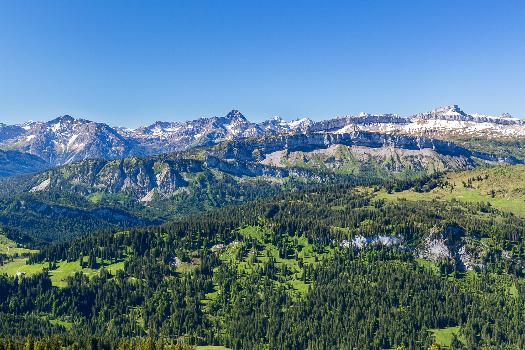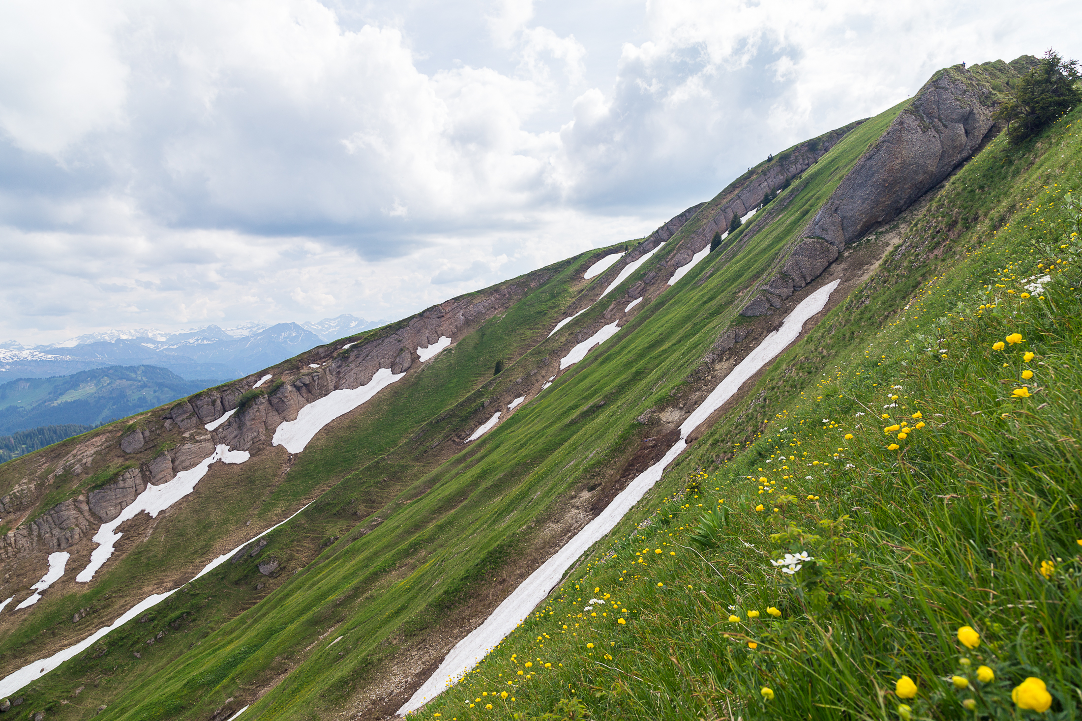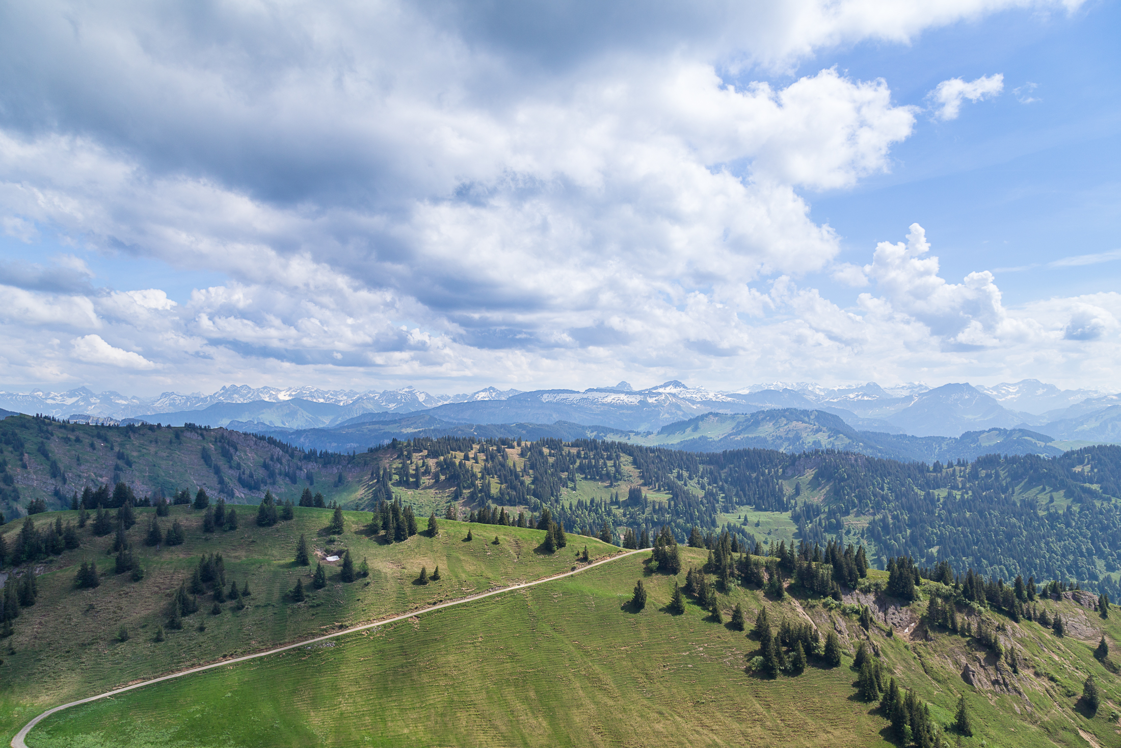I had organized a hike for the expats at my location for the day after, and with an early summer hike I figured I’d choose an easy trek, deciding without much anxiety on Riedberger Horn. It was a little weird to think that to the day six weeks prior, the whole landscape was under a good two feet of snow. Unlike the previous day, where it was all but impossible to have a shot of only clear sky, that on the day of the hike was completely blue. Ignoring my potential bias with regard to the hike, I’d consider it a success — the entire Allgäu Hochalpen was visible!