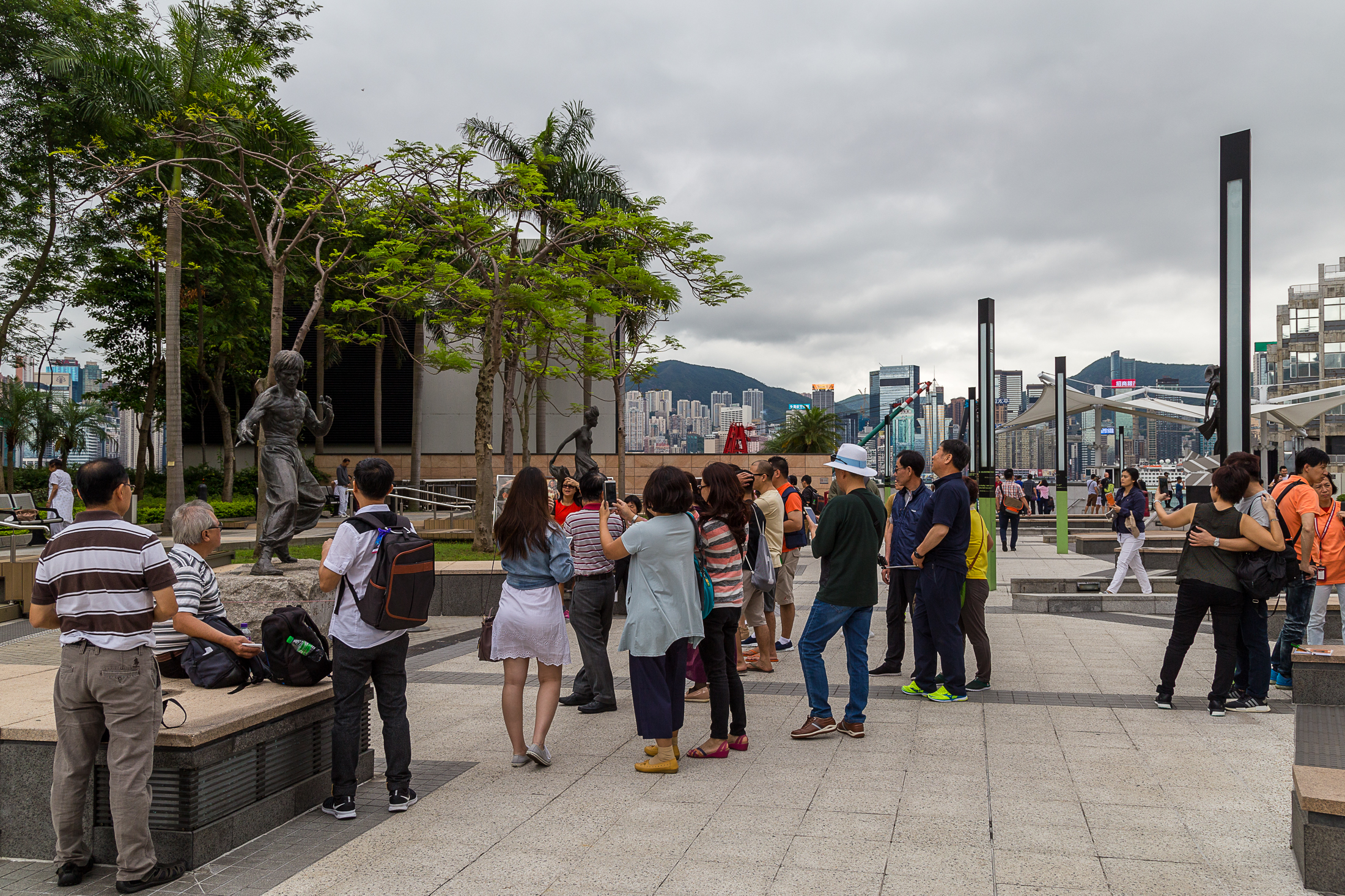 I had met up with my parents at the airport, and our explorations on the only full day we had in Hong Kong were first around Kowloon. After taking the MTR from our hotel on Hong Kong Island, we ended up at the under-renovation Avenue of Stars, where understandably the most popular star was Bruce Lee.