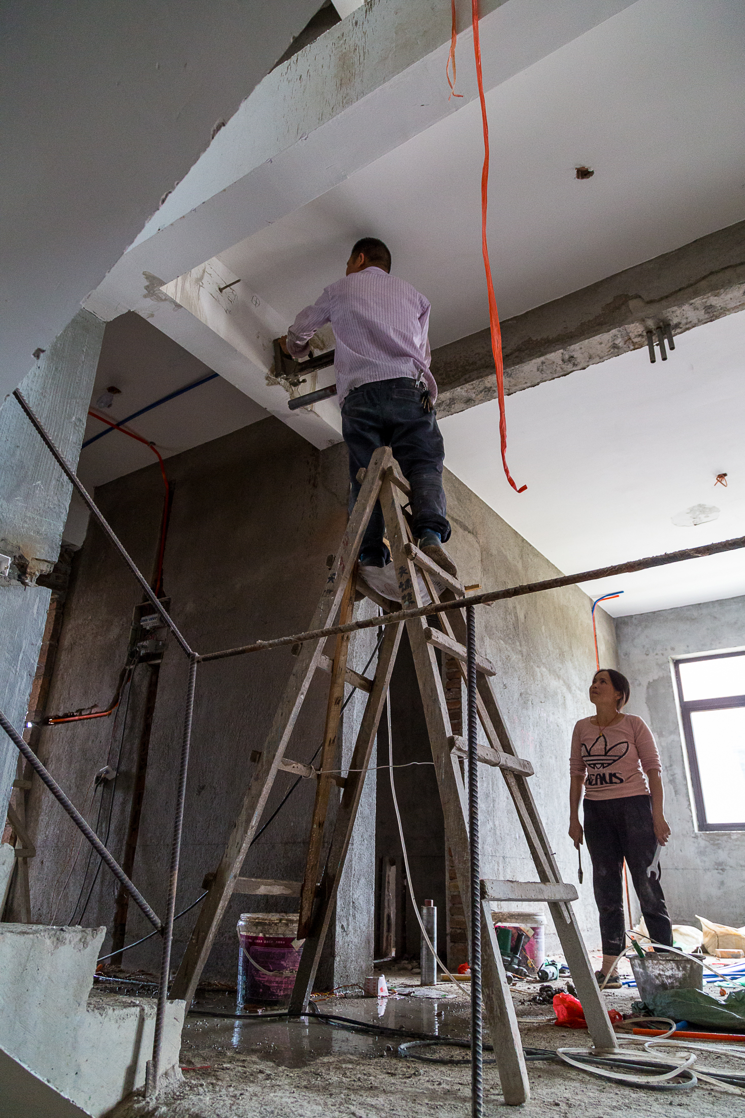 It’s rather the sharp contrast in “tiers of accessibility” that is surprising. Somewhere in the ballpark of several hundred such houses will be built in this gated community, and a fair number thereof have been paid in cash. Their buyers drive expensive cars, no doubt also paid in cash, and generally dictate to the builder every facet of their house. Meanwhile, the workers building the houses arrive by motorbike, not because it’s necessarily their ideal transportation but because it’s all they can afford. The earth excavated was likely moved by mechanized equipment, but once the trees are razed and the earth laid barren, any remaining trenching is done by hand and moved with wheelbarrow. As an entire class is catapulted upwards into debt-free home purchases, the people who built those homes are living lives arguably unimproved by the presence and accumulation of wealth surrounding them.