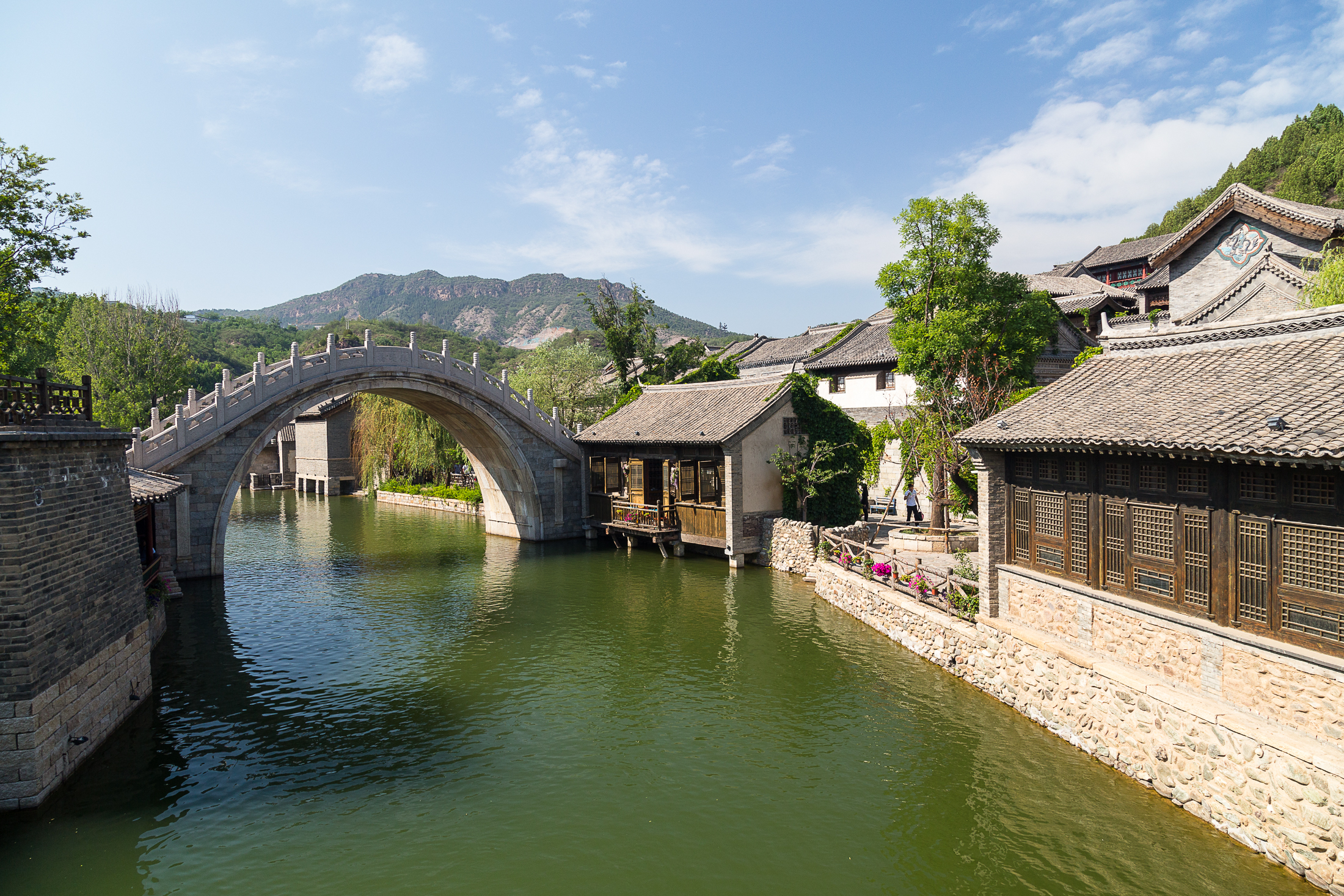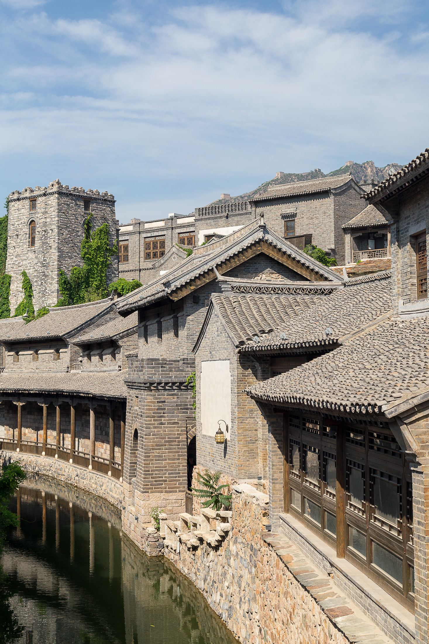 The relative quiet of this section of wall is not to say that the whole area is undeveloped or inaccessible. The opposite is in fact true, with a reconstructed ancient town opening in 2014 acting as the official entrance to the Simatai wall. The existing town in Gubei was demolished and replaced with a replica of a Suzhou canal village, Wuzhen, reassigning the farmers living previously on the land roles in the tourism industry. Its tourist center is large, bright, and modern, an almost ironic contrast to the UNESCO World Cultural Heritage status inferred upon the Simatai wall rising behind it.