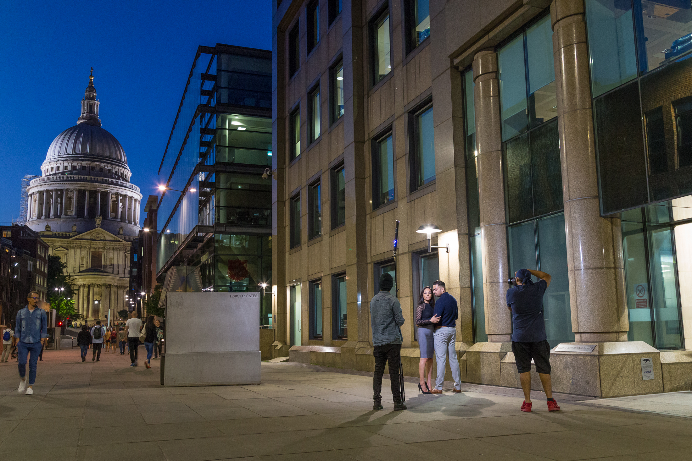 I thought the sunset looked like it had potential and decided to head back to the Tate, not realizing the setup I saw the day before was to close the whole museum the day after. I didn’t miss much since the sun ducked behind some clouds, so after some night photography along the wharf I retraced my steps back to the hotel from the day before, stopping again to take a picture of the National Firefighters Memorial just before St. Paul’s. The deployment was certainly different, but the tone still somber: the Grenfell Tower fire broke out the day I flew into London.