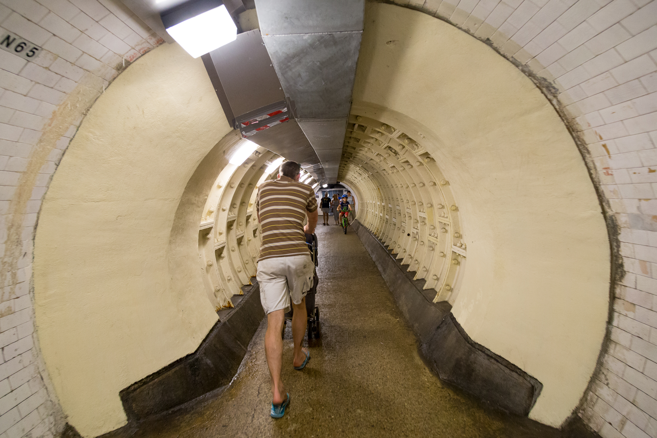 Between the heat and not having cash I decided on sushi for lunch instead of the market. It was a good choice not to get anything warm to eat, as in the hour since I left the observatory it felt like the mercury climbed ten more degrees. I looked up directions to get to my next stop, my interest piquing when I learned I could walk under the Thames rather than cross it above. A second perk: a stairwell leading downstairs meant the next ten minutes were the coolest of the whole day, as the underwater tunnel was probably around 60 °F. Relief!