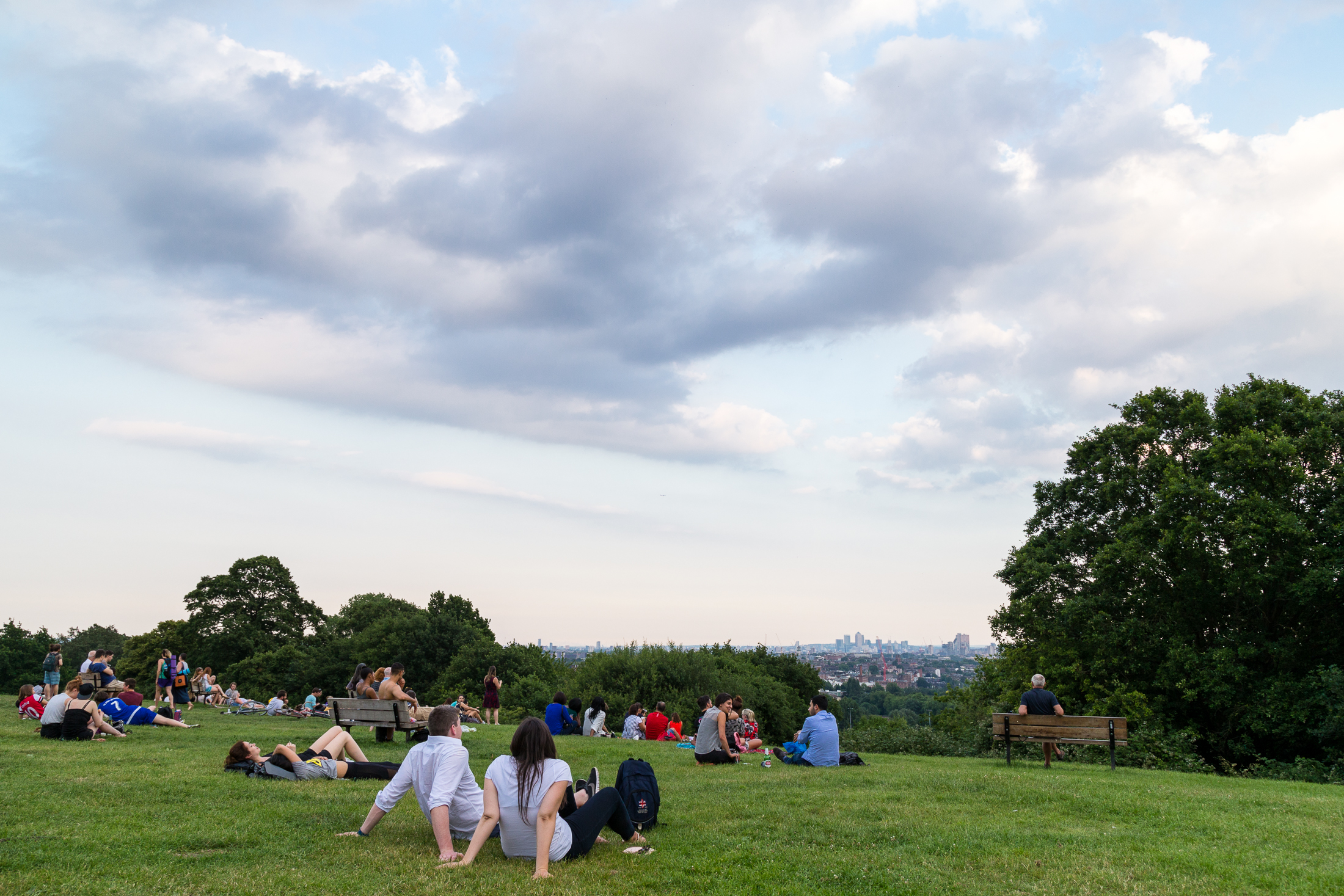 It was nice to have a restaurant to myself, but the photographer in me got me on my feet before the evening crowd arrived; if I can make it to London again, I’ll make sure not to tie my schedule to photography as much. My final stop for the day, and final visit for the trip, was to Hampstead Heath, which has good views over London. I wanted to find something slightly different from the views I had from the Tate while avoiding any extreme walks to satisfy my growing interest to just relax. I wasn’t the only one with the same intentions, and for good reason: it was still warm, but the intolerable heat had mellowed into a soothing summer’s evening. Weary from days of nonstop action, I called it an early night and headed back to the hotel. My head hit the pillow before the sky turned dark.