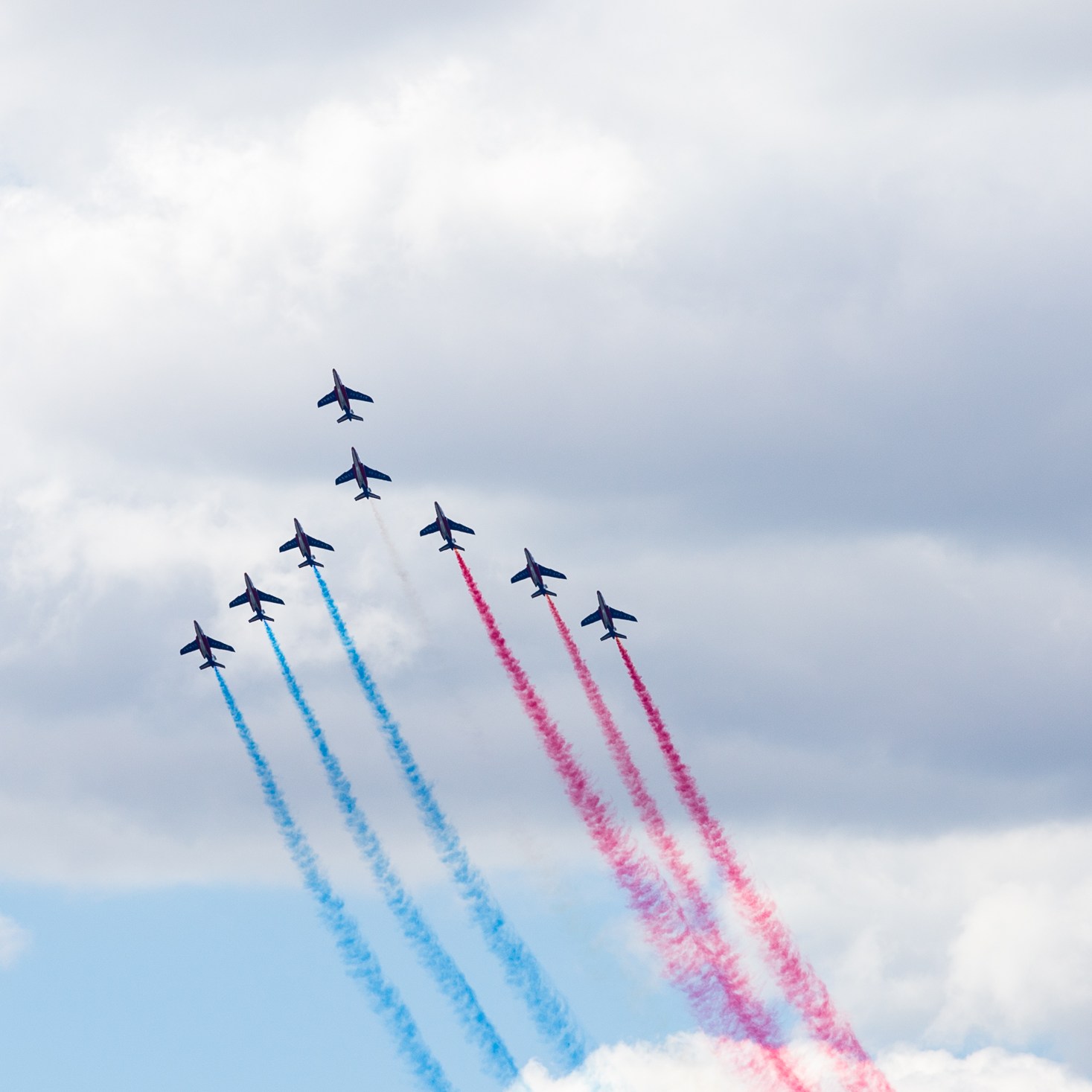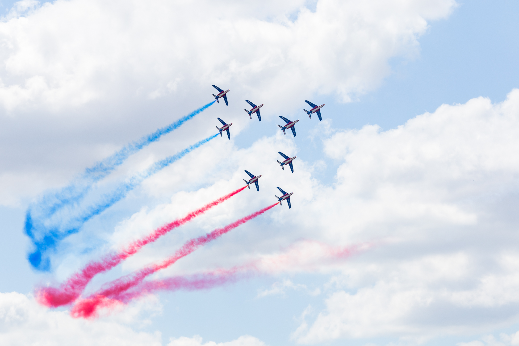 The sense of European aviation pride seemed strong with the flying displays and was perhaps topped with the French equivalent of the United States Navy’s Blue Angels. The Patrouille de France is the aerobatic arm of the French air force, and in the summer months put on performances at the Bastille Day celebration and, every two years, at le Bourget.