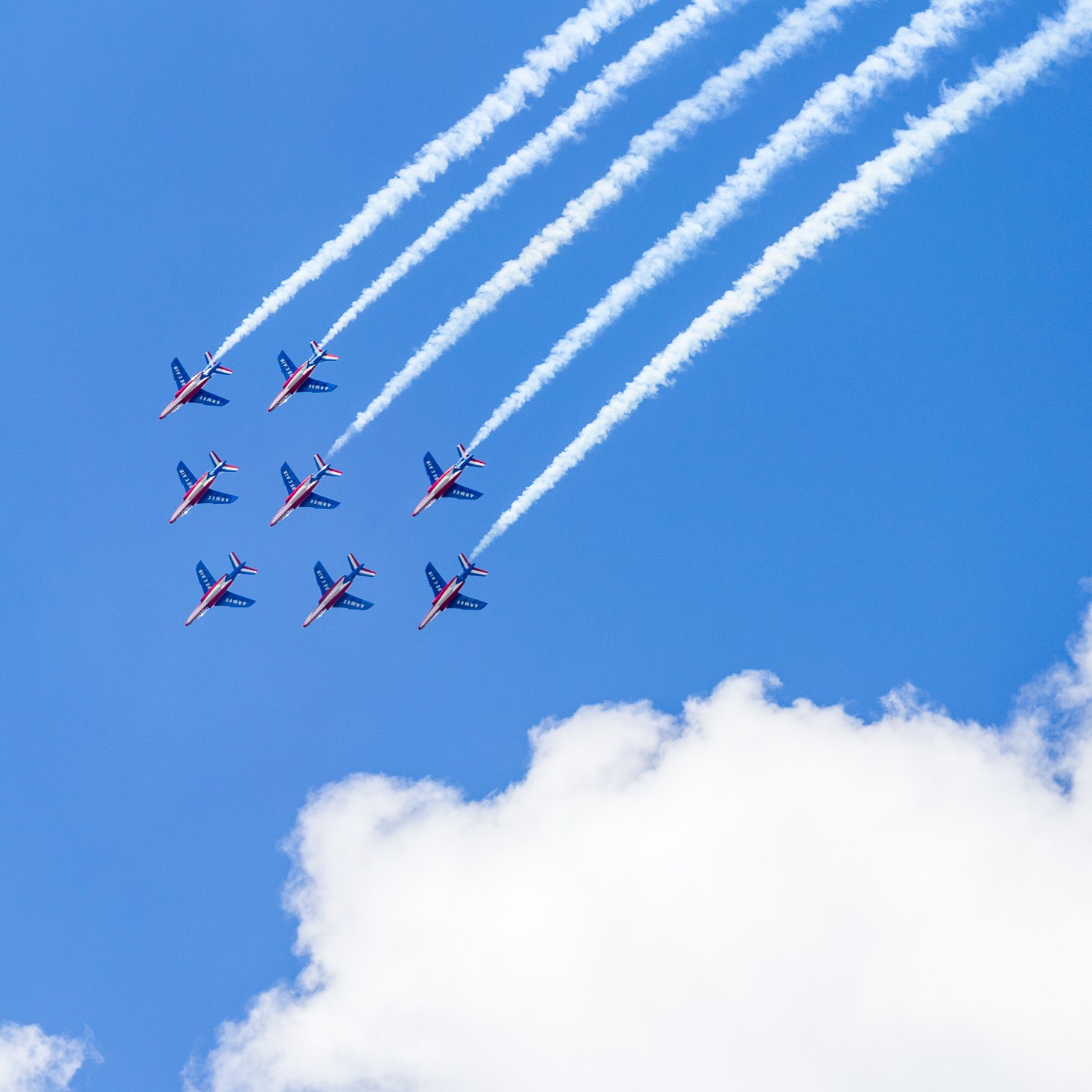 The precision of the movements was impressive, so much so that I was left speechless. French attendees at the air show were far more vocal supporting their pilots. Aeronautics often give me goosebumps, and even the heat of the afternoon couldn’t fend them off this time. Seeing the images again, even years later, triggered bumpy skin and tingly sensations anew. The various demonstration squadrons (USN — Blue Angels; USAF — Thunderbirds) are all based on US fighter jets, and seeing these Dassault Alphas was another indicator of how global the defense market has become.