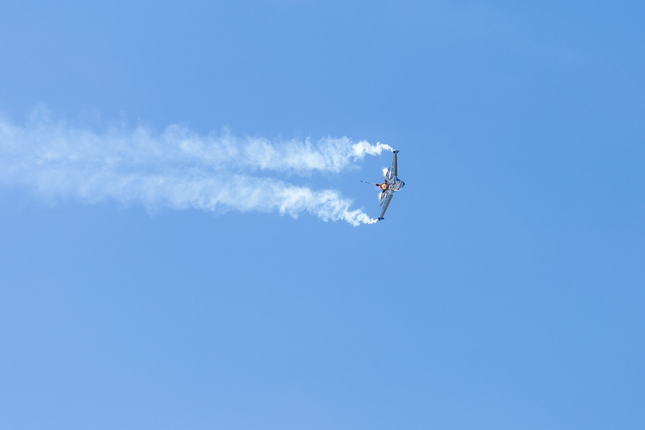 As I baked in the sun, I was reminded of my Faroese birding experience of my occasional need for a longer lens. The nimble planes became dots as they darted spaceward. I was relieved when commercial jets ambled onto the runway — despite not necessarily seeming big to the passenger, they more than filled my viewfinder and also allowed for much easier focus tracking throughout their demo.