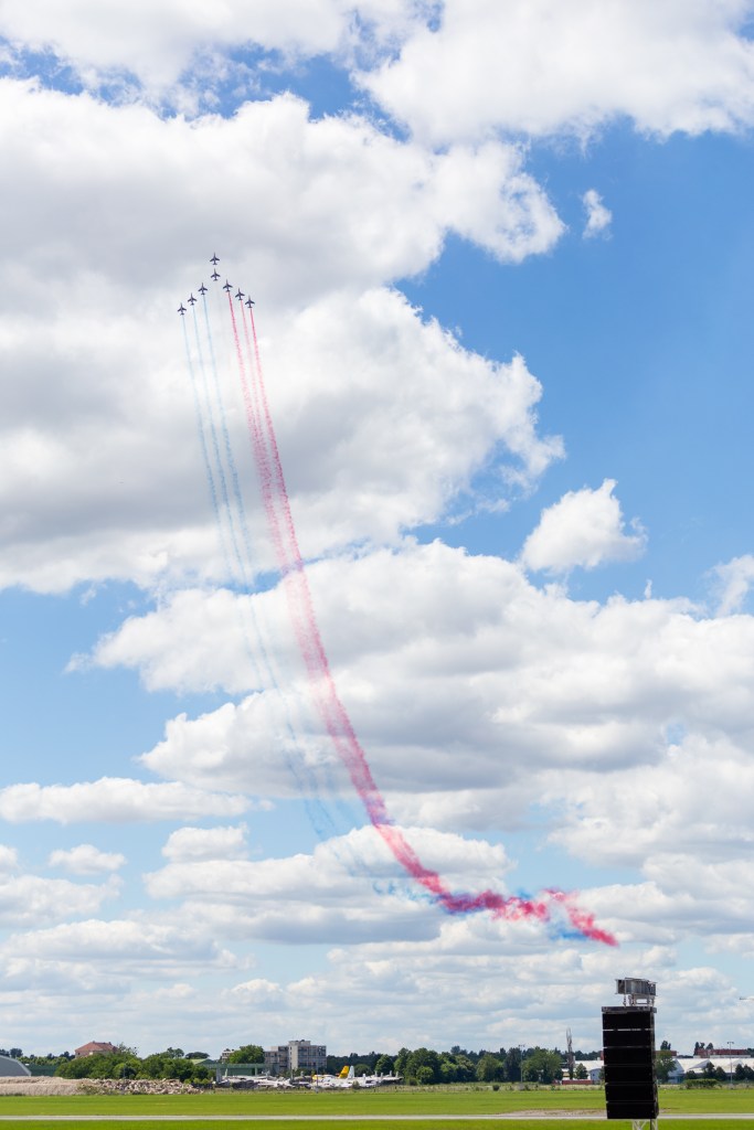The sense of European aviation pride seemed strong with the flying displays and was perhaps topped with the French equivalent of the United States Navy’s Blue Angels. The Patrouille de France is the aerobatic arm of the French air force, and in the summer months put on performances at the Bastille Day celebration and, every two years, at le Bourget.