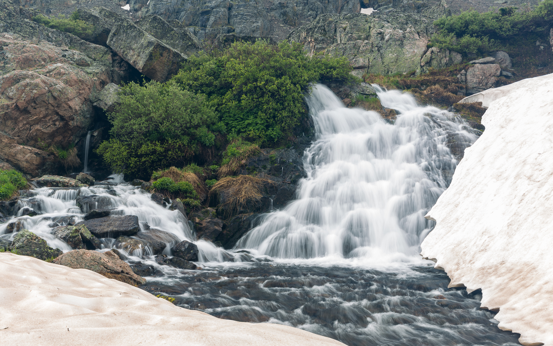 I passed by a waterfall on my way down, stopping and testing how well I could hold the camera steady as I tripped the shutter on a somewhat-long exposure. Anytime there’s a waterfall on a hike, I’ll try to grab a picture of it. Perhaps it’s a subconscious omen: in my travels I’ve learned how much water has shaped what we think of as peaks and summits today.