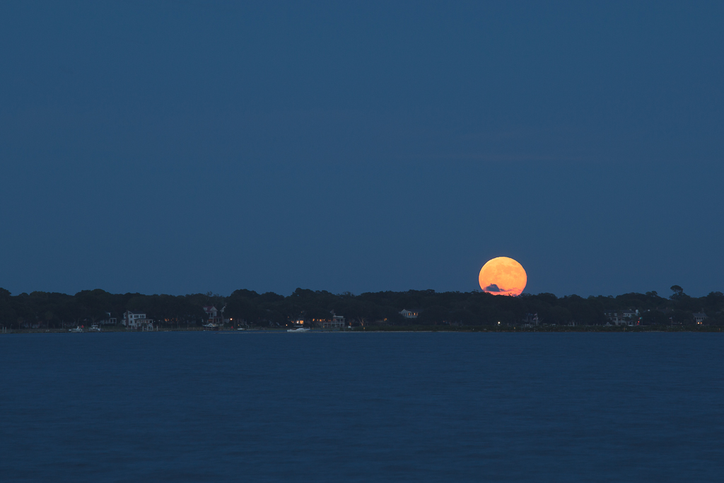 Impeccable timing! I had just written a post boasting about the serenity of dawn, and a week later (photography time, not real time) I end up actually leaving work “early” to catch the sunset and the blue moon. There are two definitions of a blue moon, but in this case, the full moon was the third in a season (rather than the second in a month). It’s been a long time since I’ve explicitly gone somewhere to watch the moonrise (the last time was in 2007 on Tolmie Peak — after work on a Monday!), but whether from a mountain or a dock, it’s always impressive how quickly the moon rises over the horizon and shrinks into a tiny dot.
