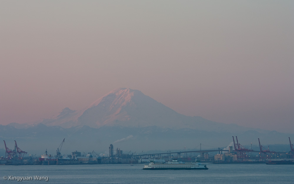 Arguably the single most identifiable object — when visible — in the Seattle skyline is Mt. Rainier. It towers above the city (roughly 14,000 feet above the city and surrounding areas), and on a clear day dominates the skyline from any place that offers a view to the southeast. Kerry Park is always a pleasant spot, but I wanted to try something new and so went with Danny Seidman (http://www.danseidmanphoto.com/) to Magnolia Park on a cloudless Saturday morning. I hadn’t expected two April days to be so sunny, but suffice to say the weather absolutely cooperated with me while I was there. The colors in the sky aren’t as vivid as they’d be with some cloud cover, but I finally got a shot with both Rainier and a WSDOT ferry. I don’t think I could ask for a more representative picture of Seattle!