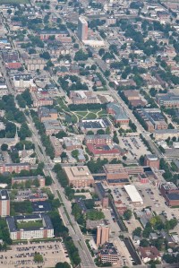 It wasn’t long before we flew over the Bardeen Quad. From the air, it looks more like “Engineering Row.”