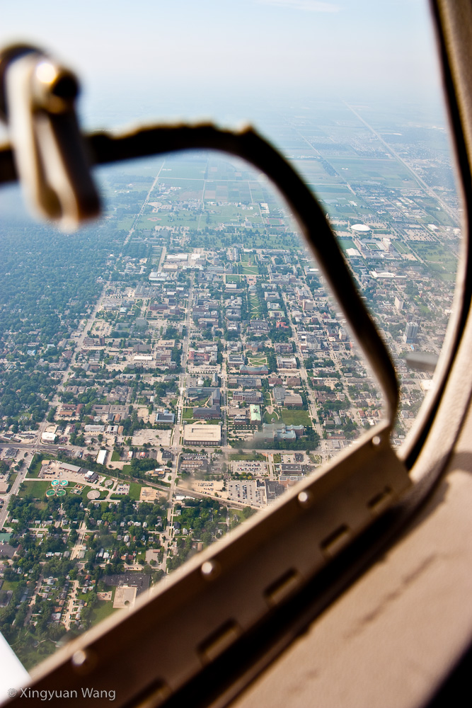 I’ve always been a big fan of airplanes, but suffice to say I like big planes; I’m not quite as comfortable in small ones. That the air was heavy that day and that there were some mild gusts of wind didn’t help ease my nerves, but soon, we were heading over Assembly Hall and Memorial Stadium. On a side note: I was watching a Nissan commercial on TV recently and noticed that the song they used as the background was one of the football team’s warmup songs. Cue college gameday nostalgia!